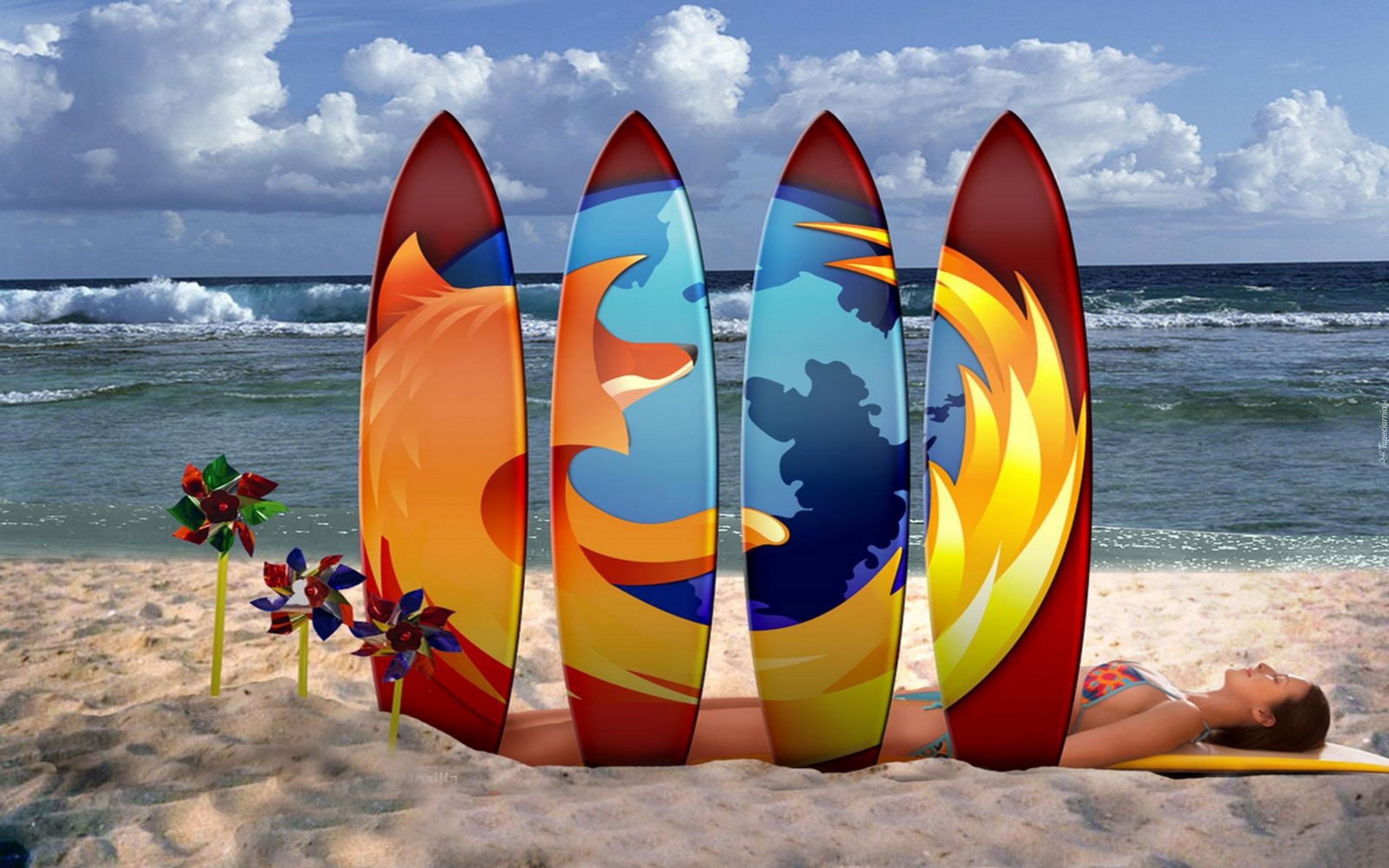 Edytor tapety: Mozilla, Firefox, Plaża, Deski, Surfingowe