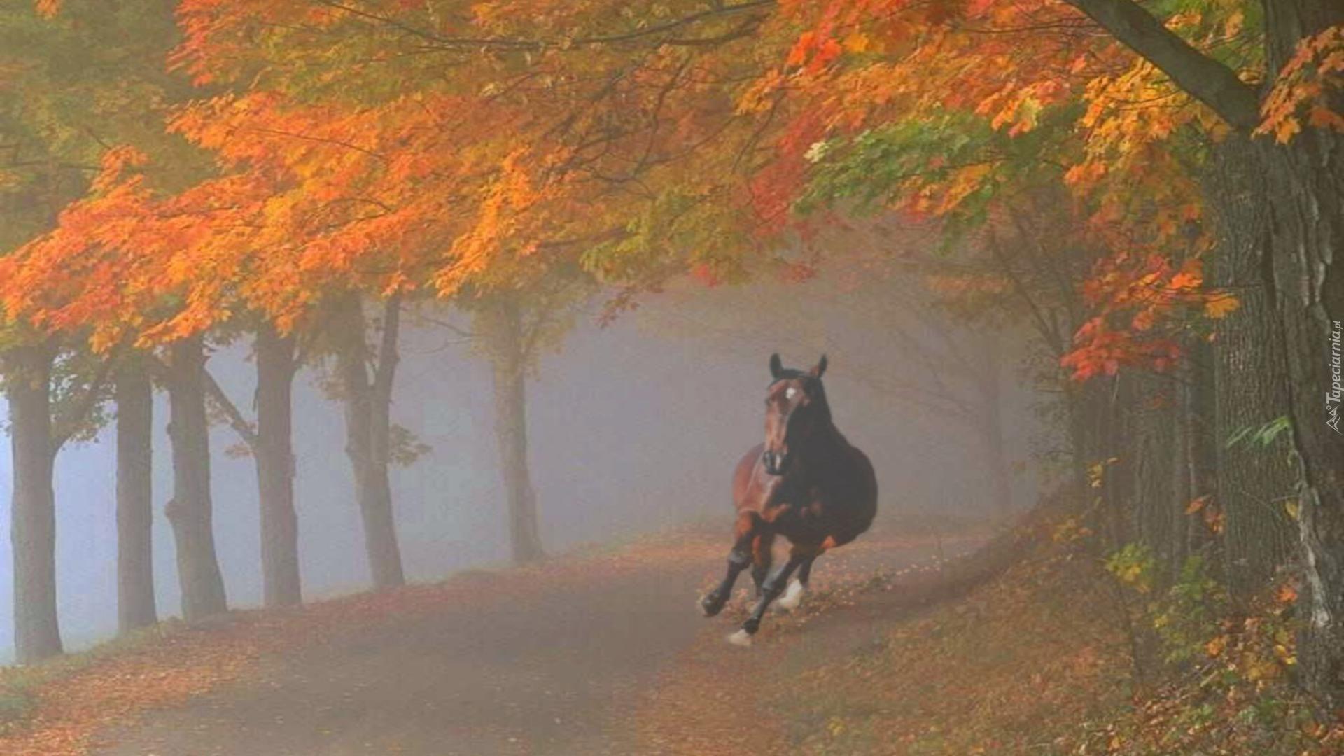 Edytor tapety: Koń, We, Mgle, Droga