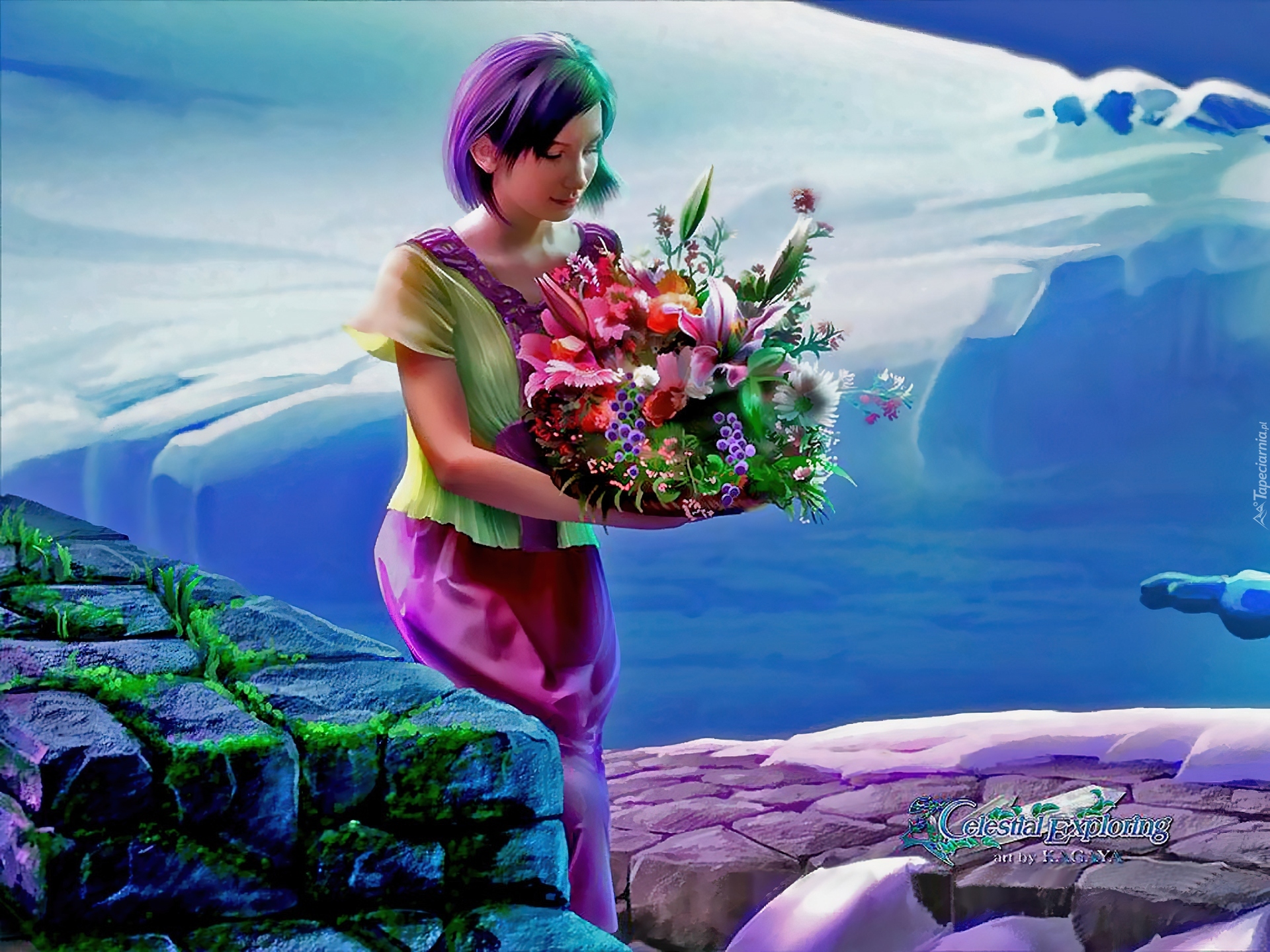 Edytor tapety: Grafika, Kagaya, Dziewczyna, Kwiaty