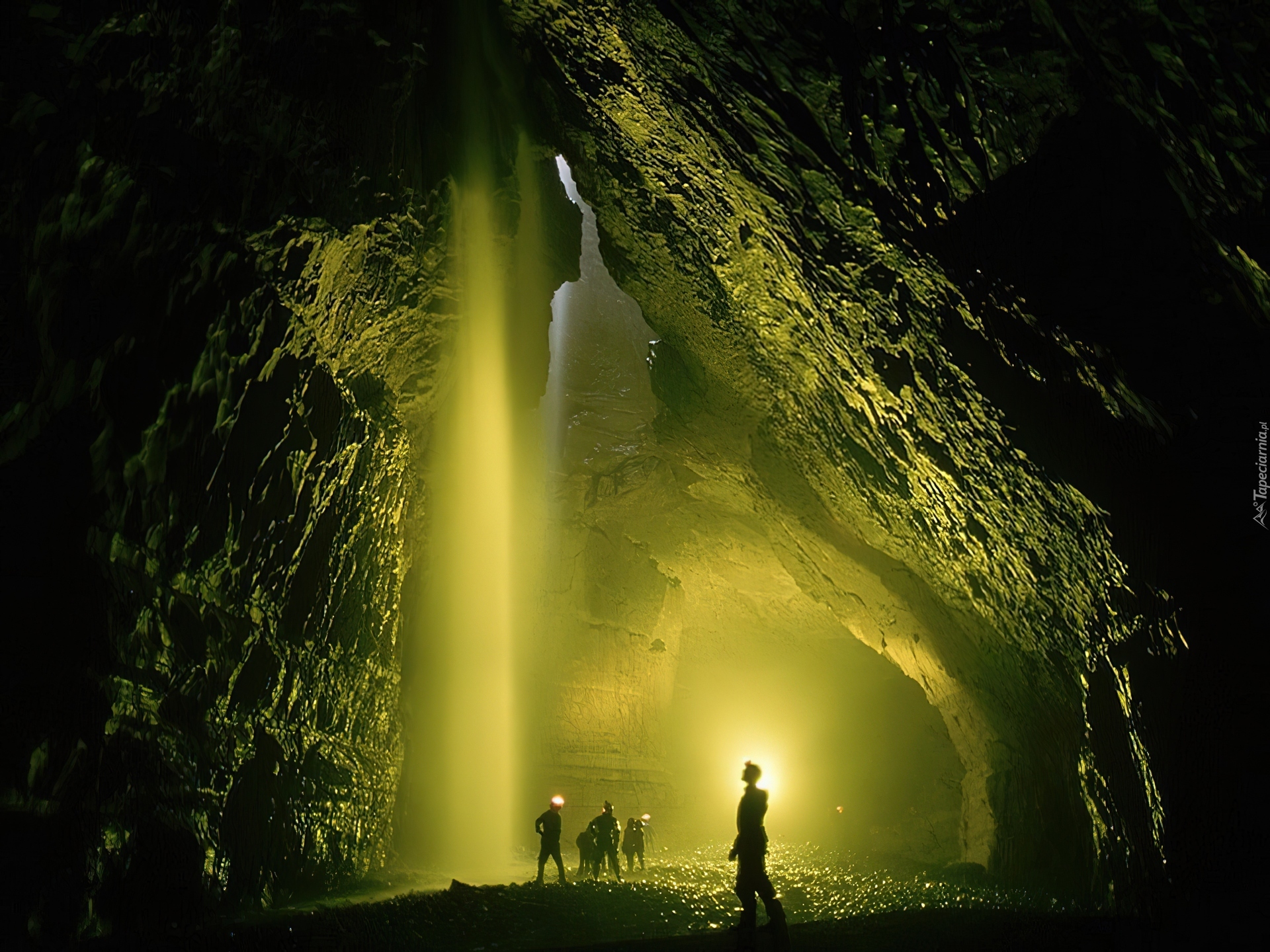 Edytor tapety: Jaskinia, Skały, Promienie, Słońca