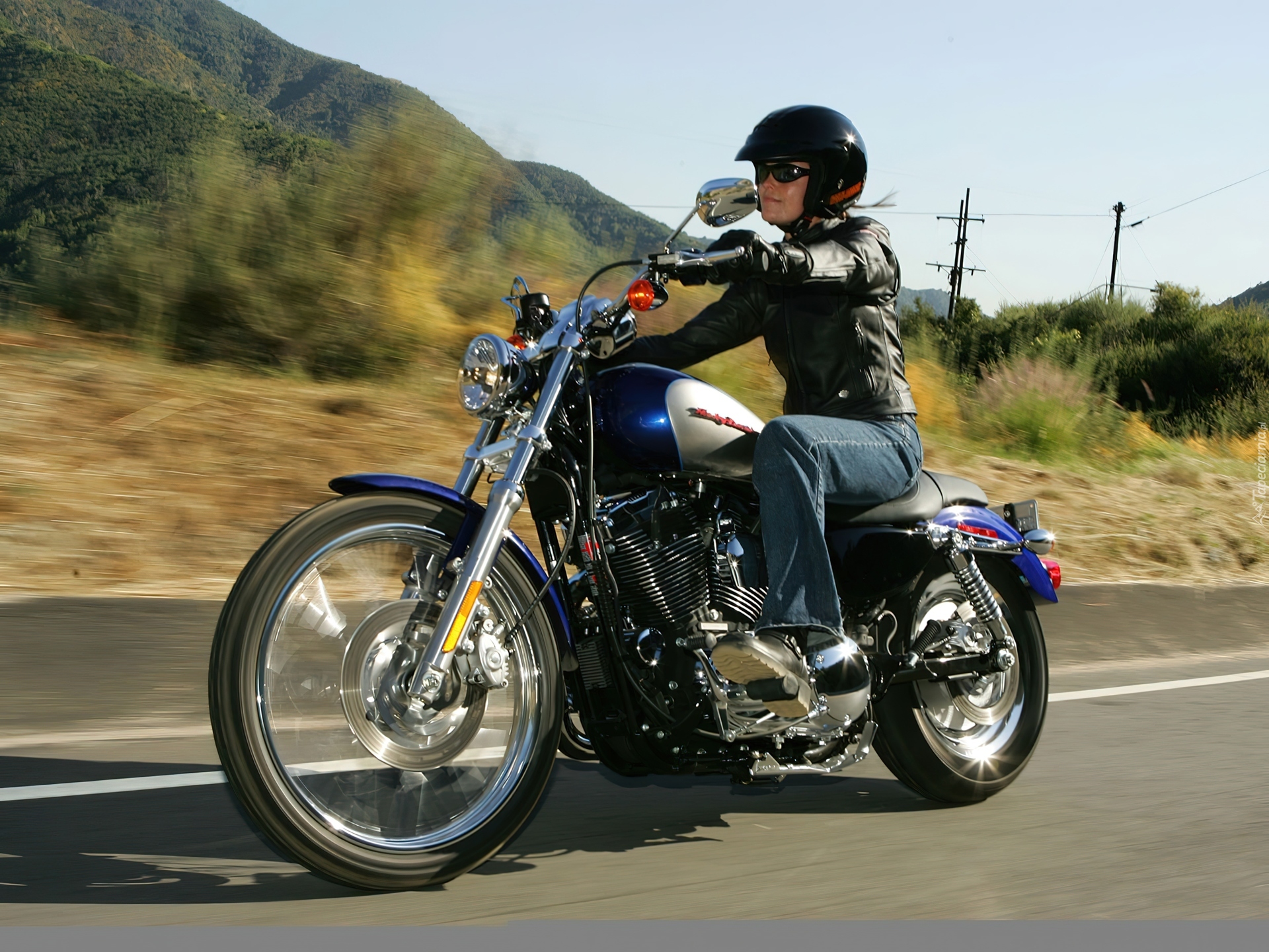Edytor tapety: Harley Davidson Sportster XL1200C, Motocyklistka