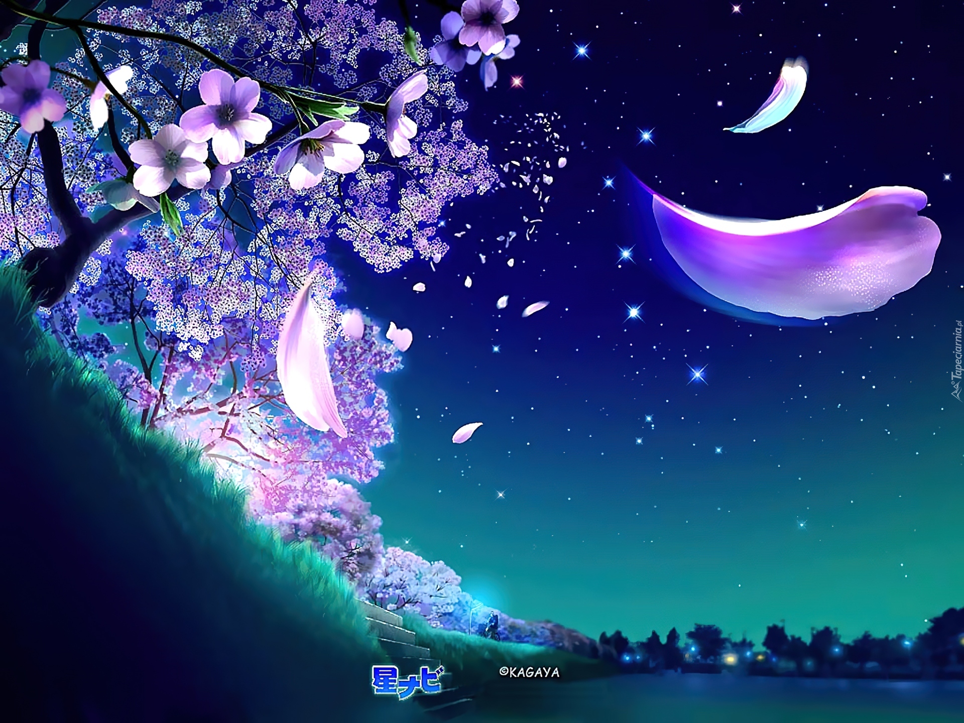 Edytor tapety: Grafika, Kagaya, Drzewo, Kwiaty, Opadający, Płatek