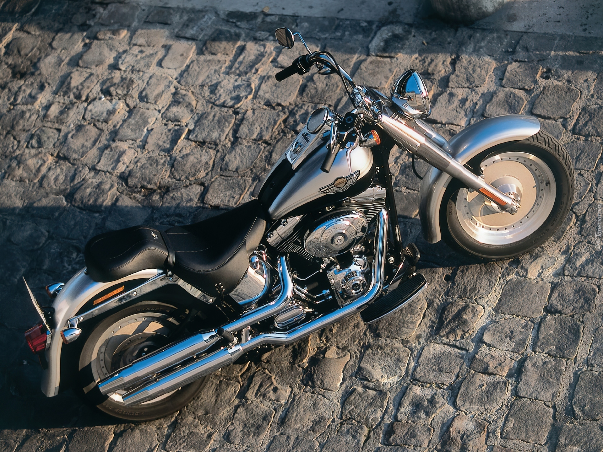 Edytor tapety: Harley Davidson Fat Boy, Kierownica, Półki