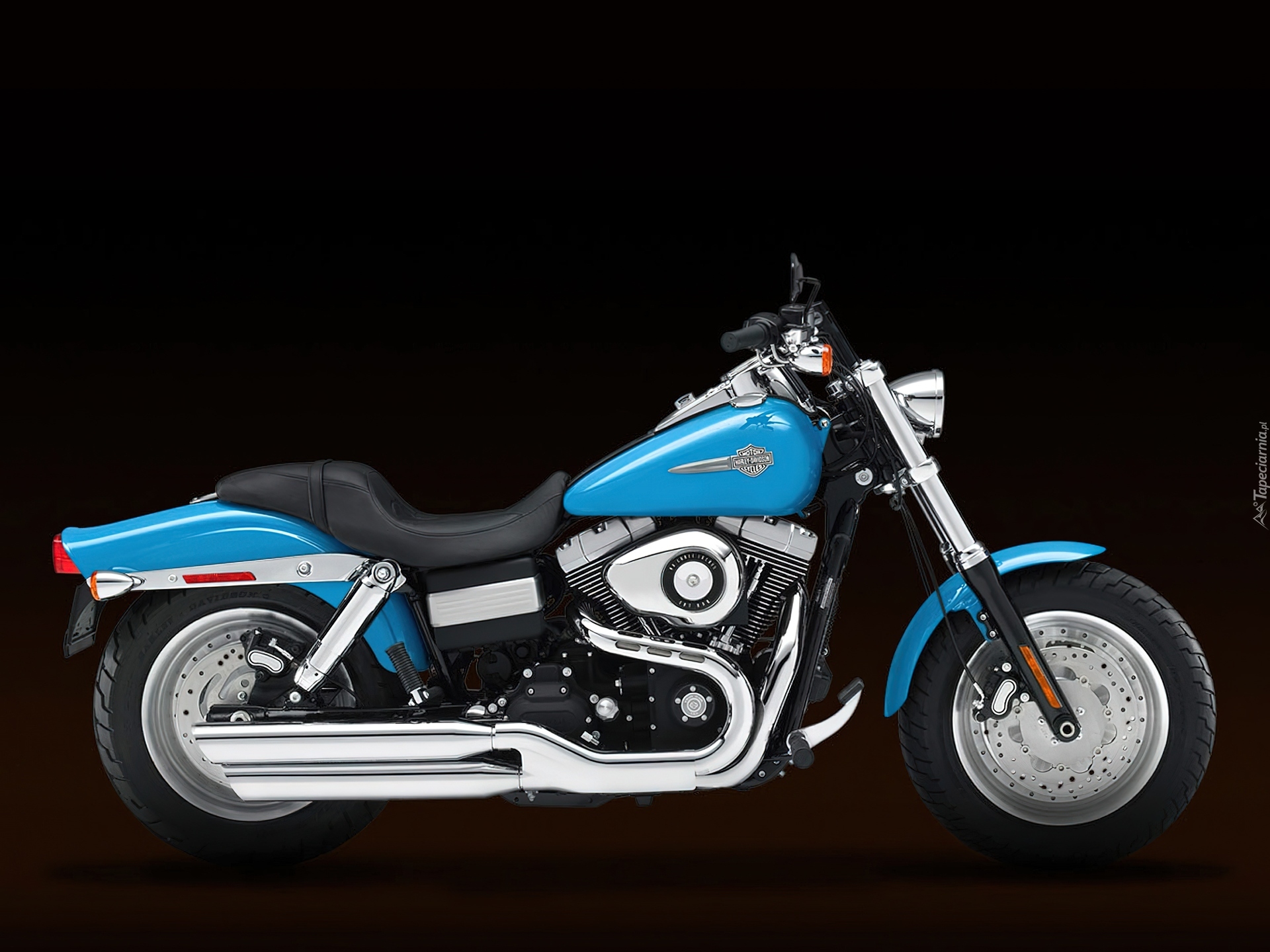 Edytor tapety: Błękitny, Harley Davidson Fat Bob, Polerowane, Wydechy