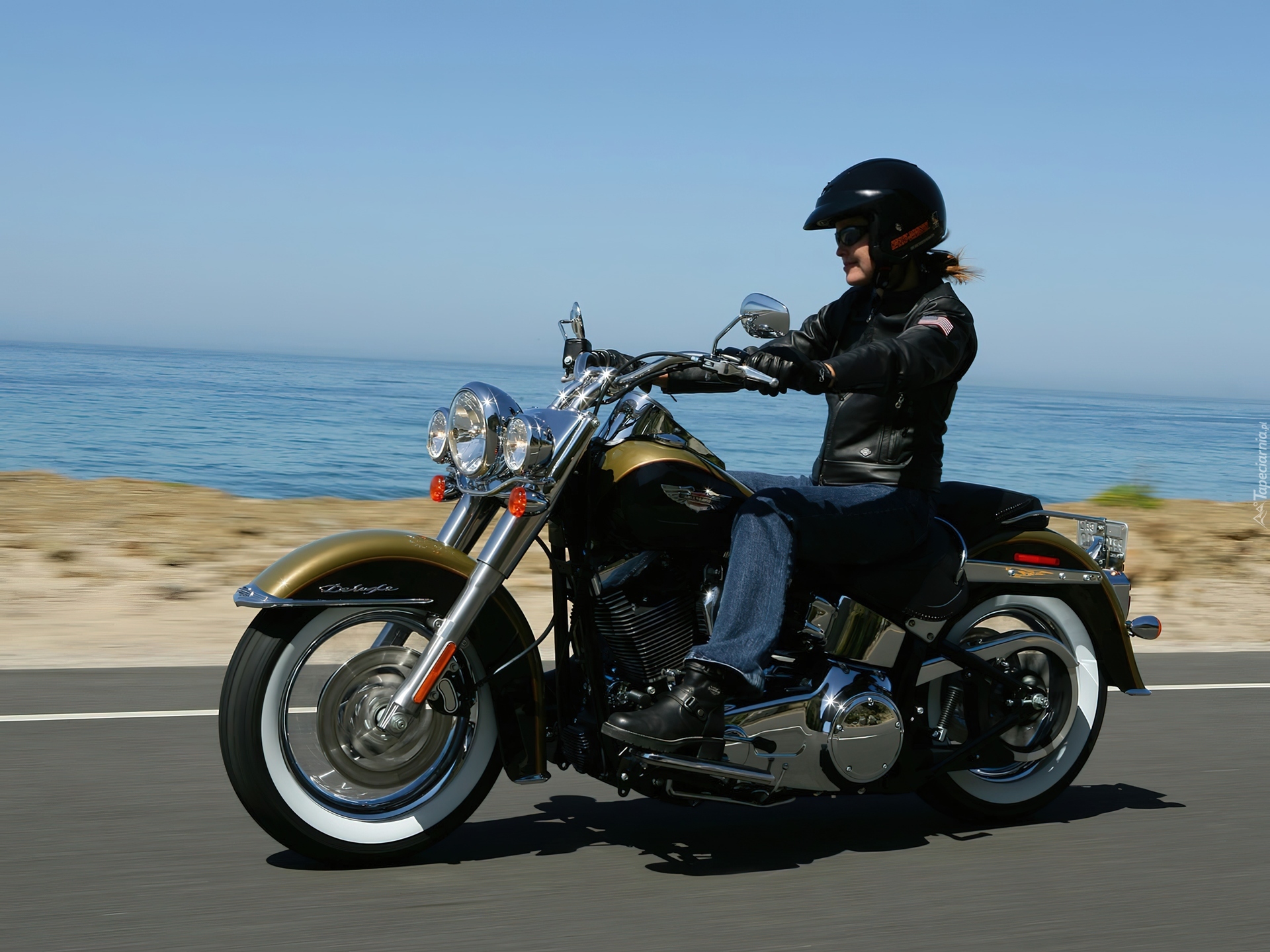 Edytor tapety: Harley Davidson Softail Fat Boy, Motocyklistka