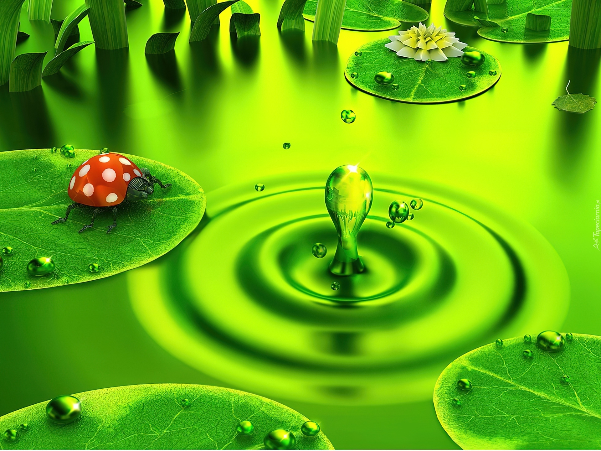 Edytor tapety: Mechaniczna, Biedronka, Kropla, Sadzawka