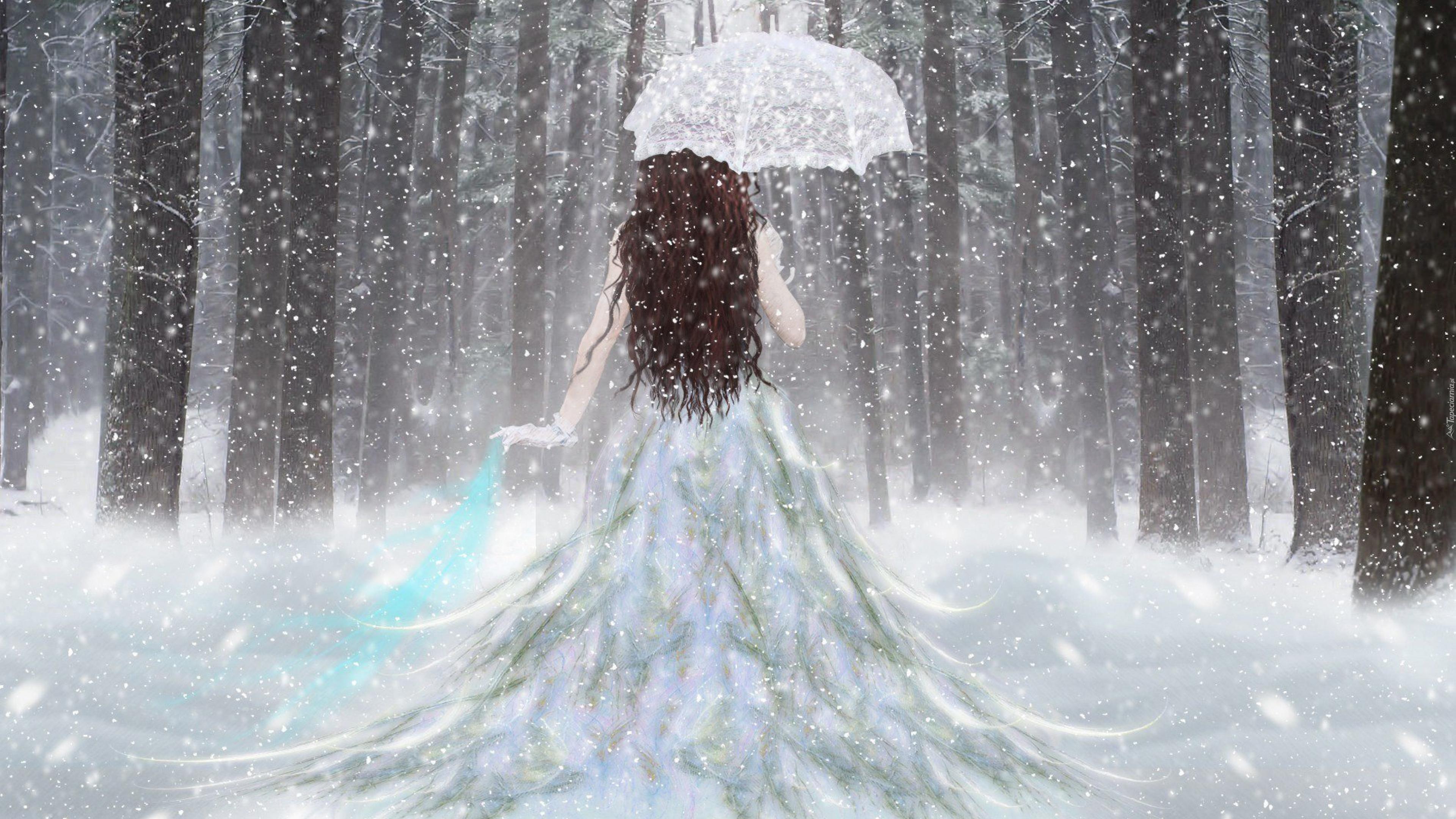 Edytor tapety: Fantasy, Kobieta, Zima, Śnieg, Parasolka