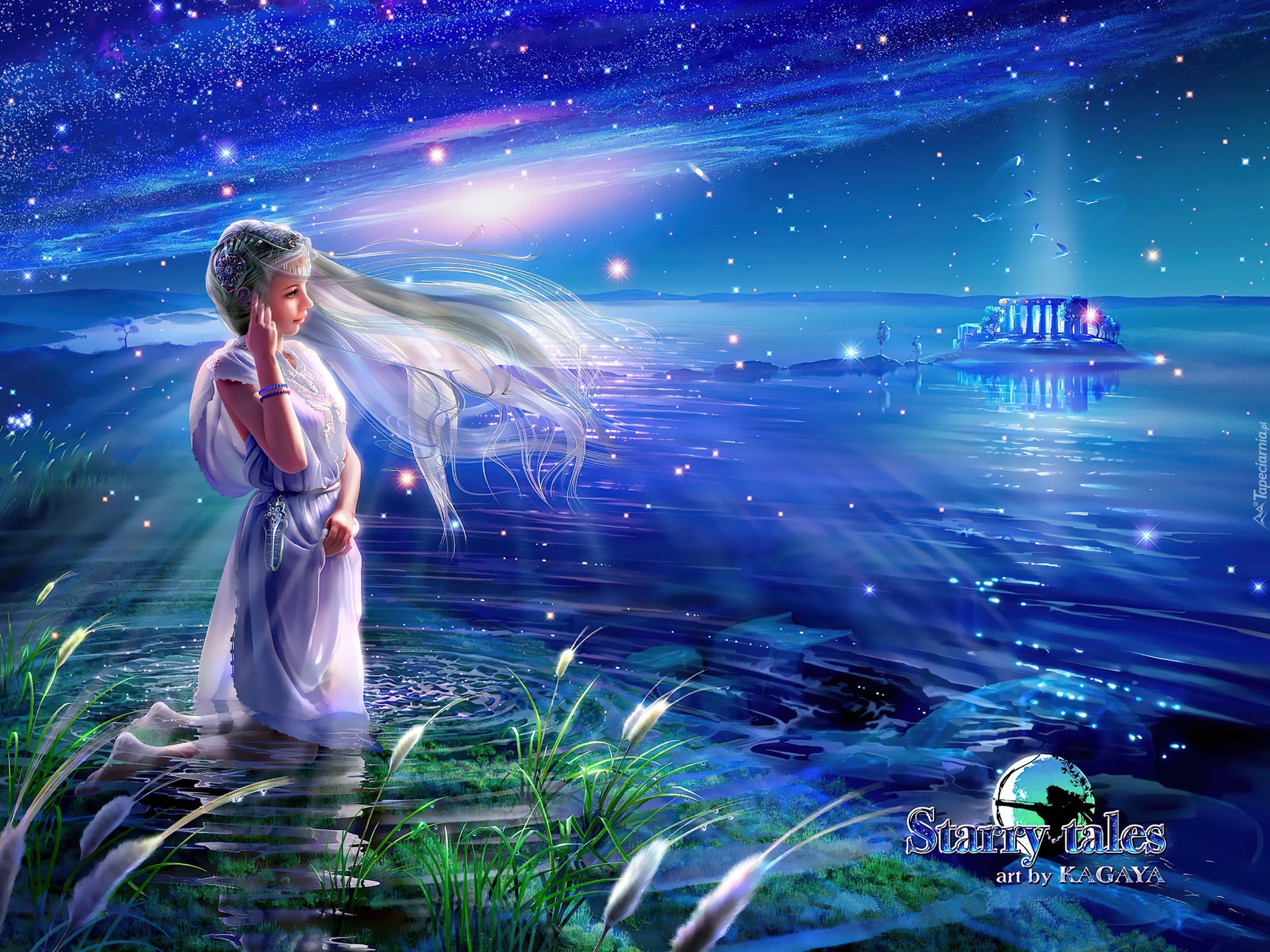 Edytor tapety: Grafika, Kagaya, Dziewczynka, Włosy, Woda
