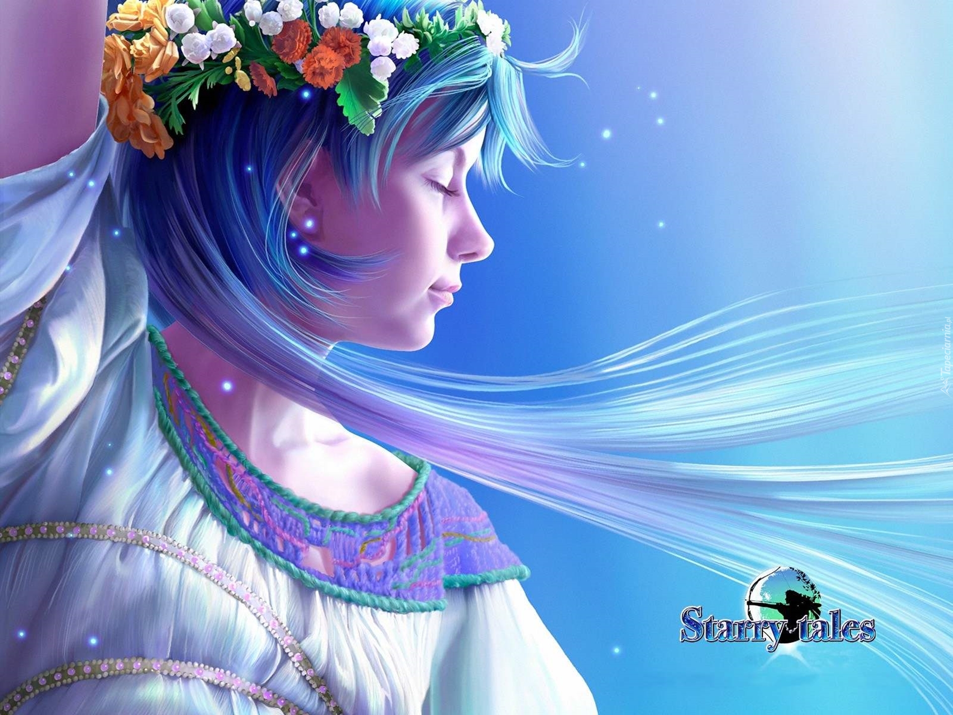 Edytor tapety: Grafika, Kagaya, Dziewczyna, Włosy, Wianek