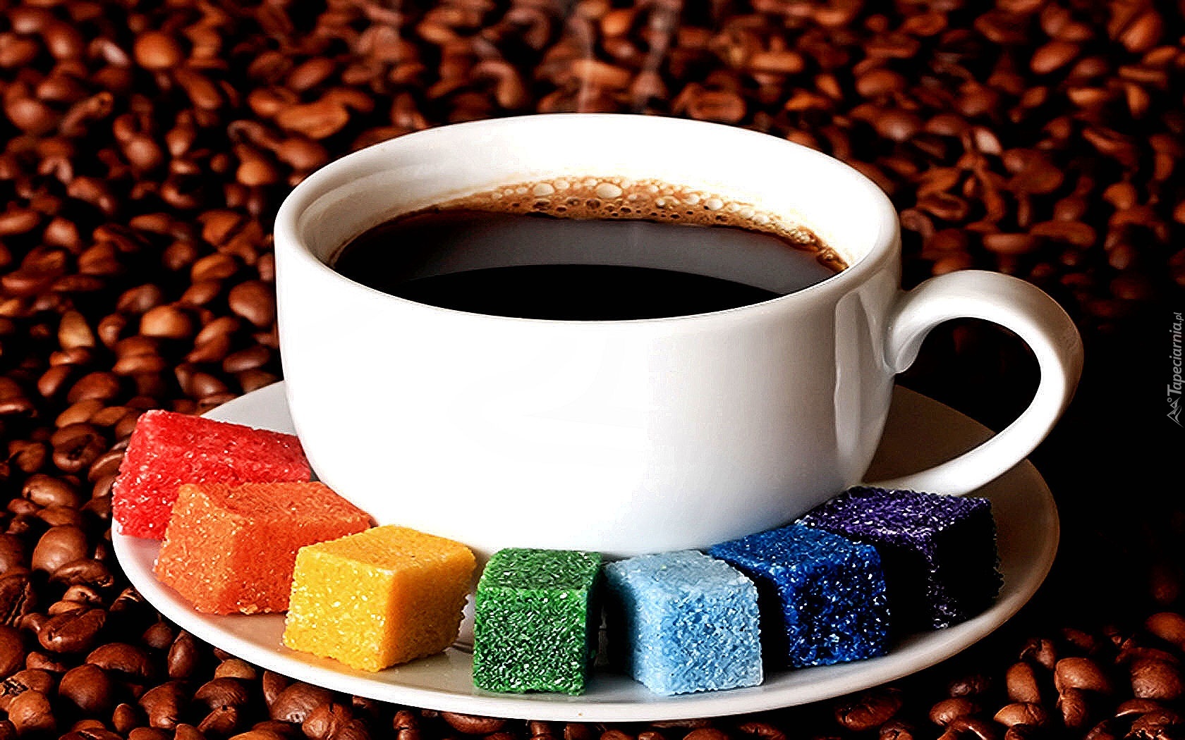 Edytor tapety: Filiżanka, Kawy, Kolorowe, Kostki, Cukru