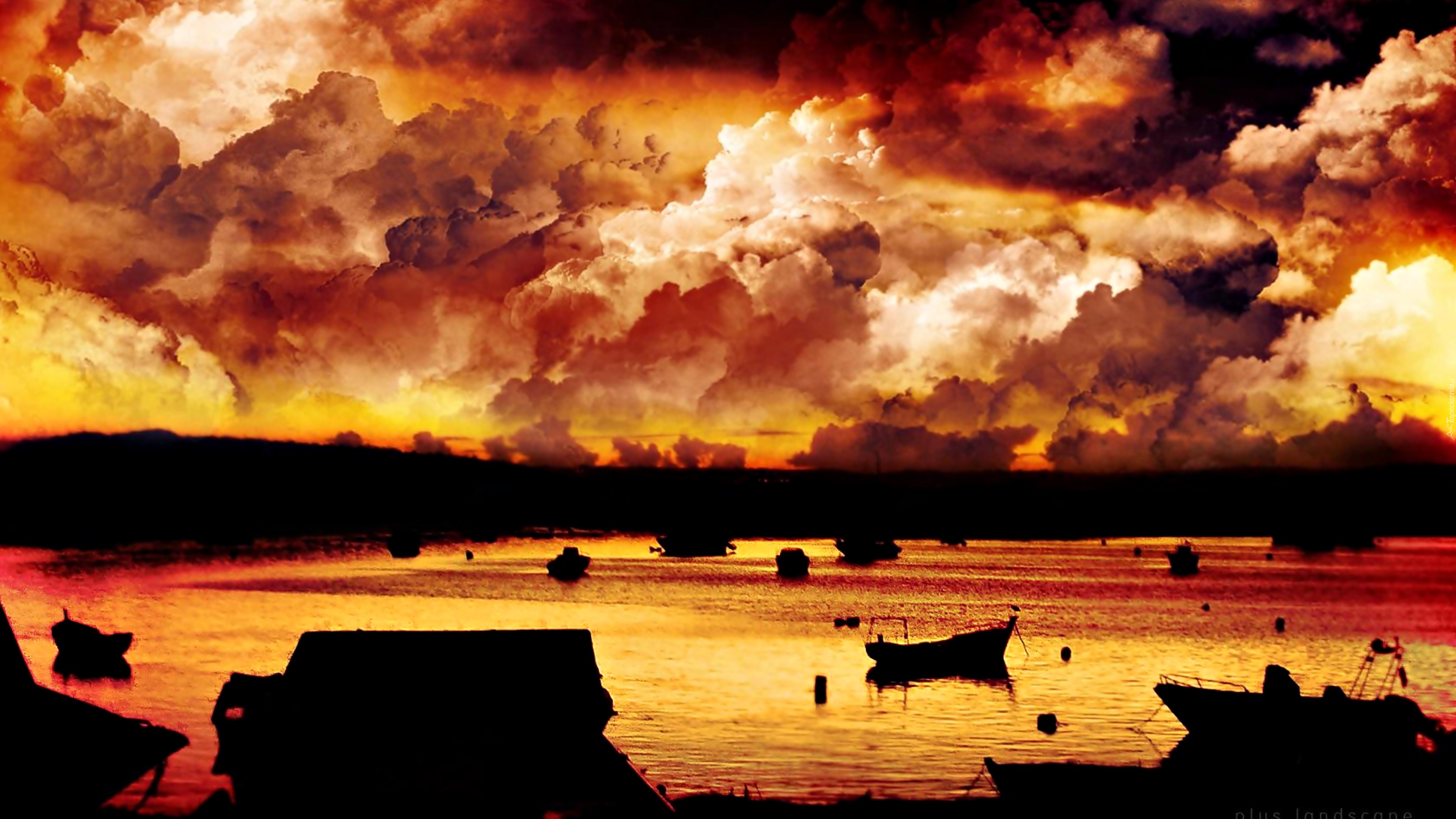 Edytor tapety: Zachód Słońca, Zatoka, Łódki