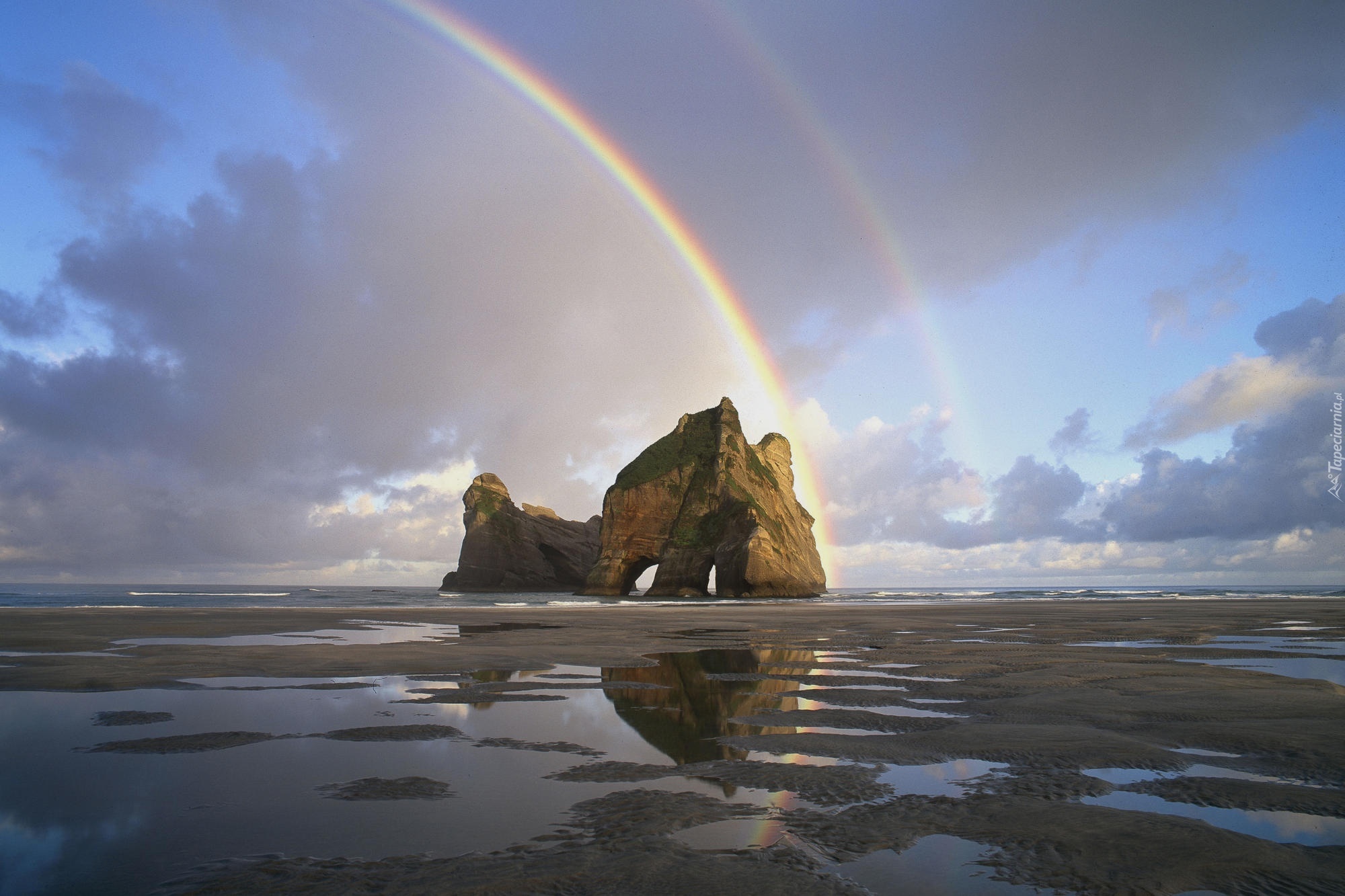 Edytor tapety: Tęcza, Skała, Morze