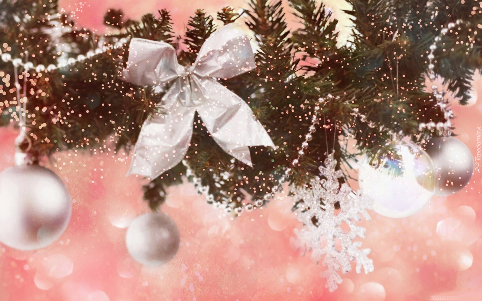 Edytor tapety: Gałązka, Bombki, Wstążka