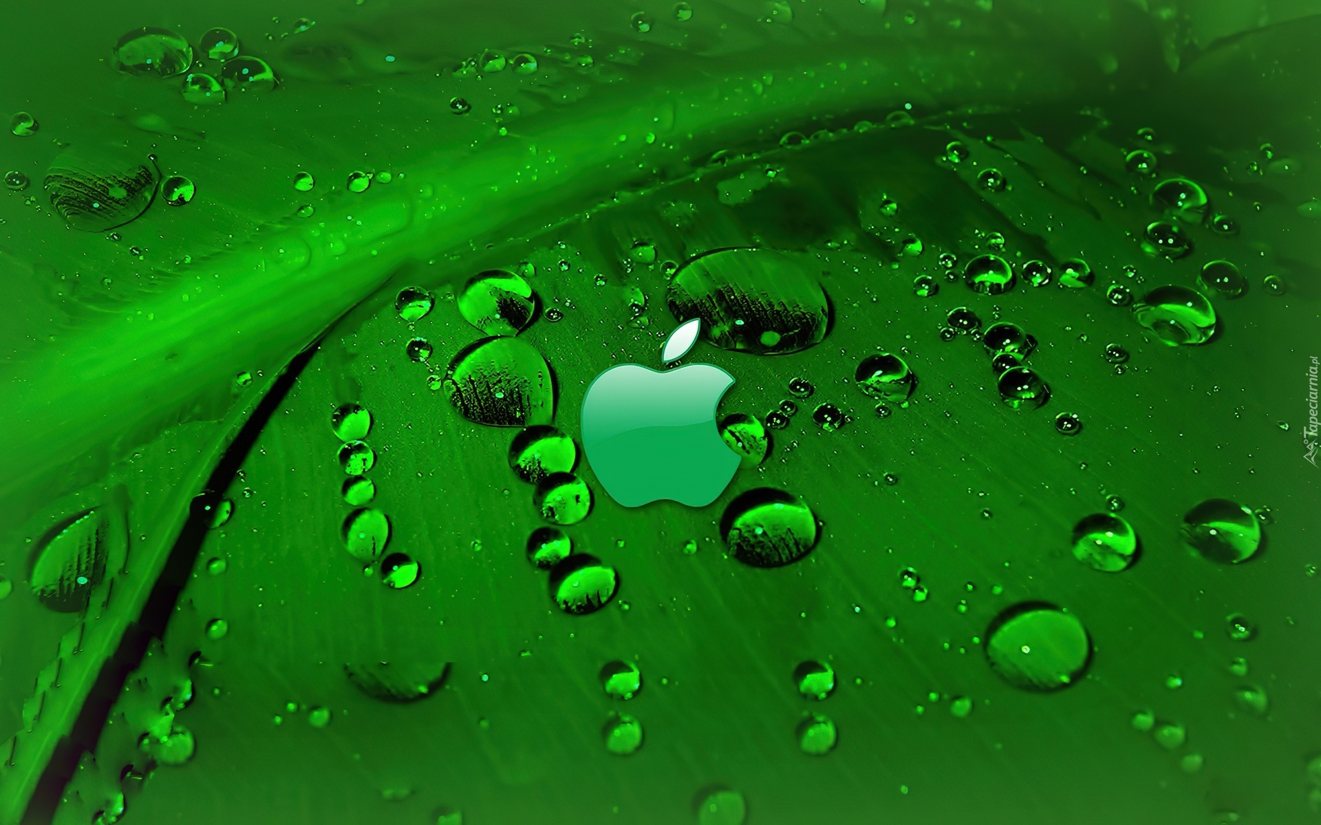 Edytor tapety: Zielony, Liść, Rosa, Logo, Apple