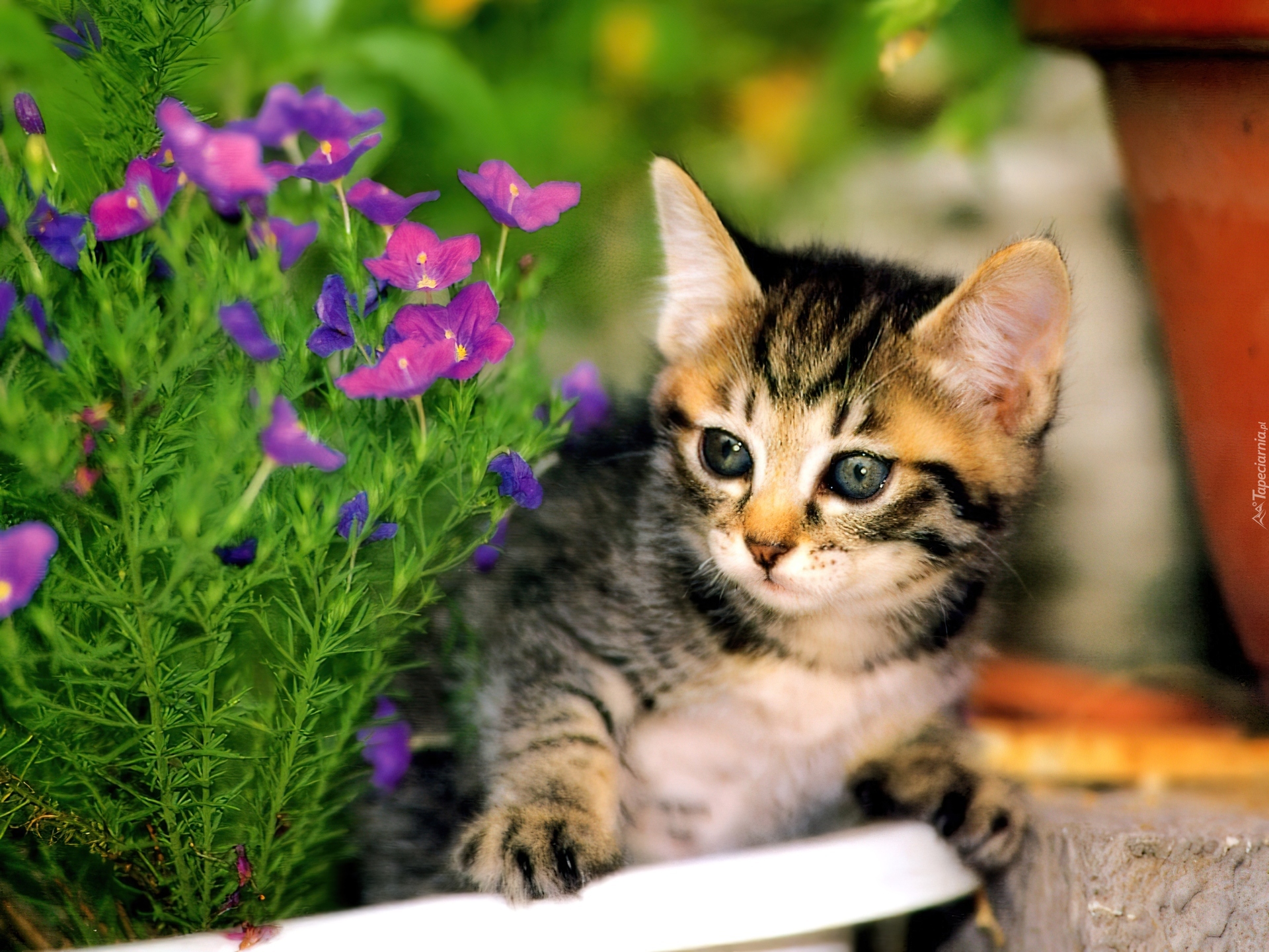 Edytor tapety: Kotek, Doniczka, Kwiatki