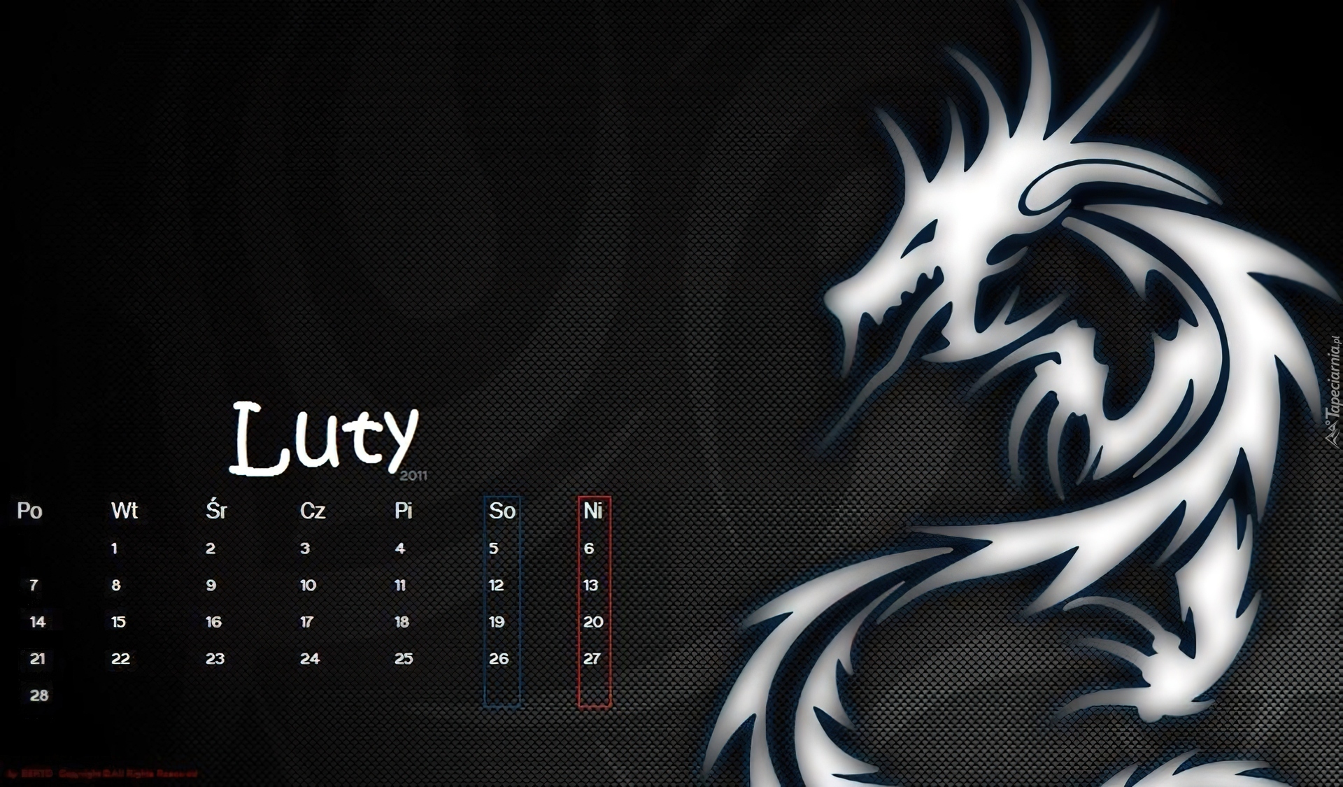Edytor tapety: Kalendarz, Rok 2011, Luty