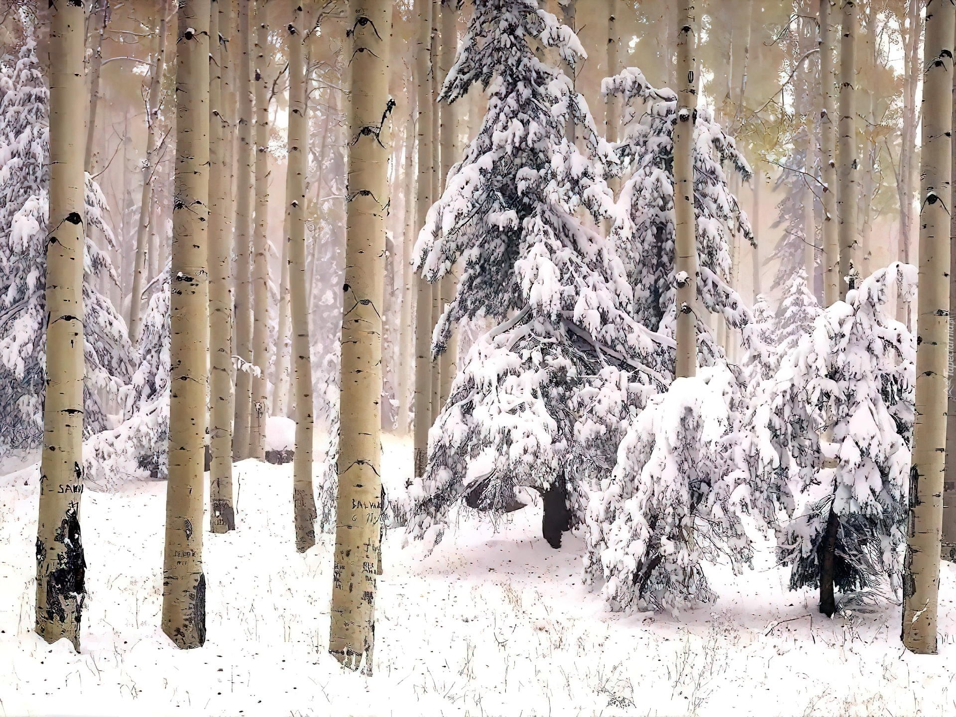 Edytor tapety: Śnieg, Las, Drzewa