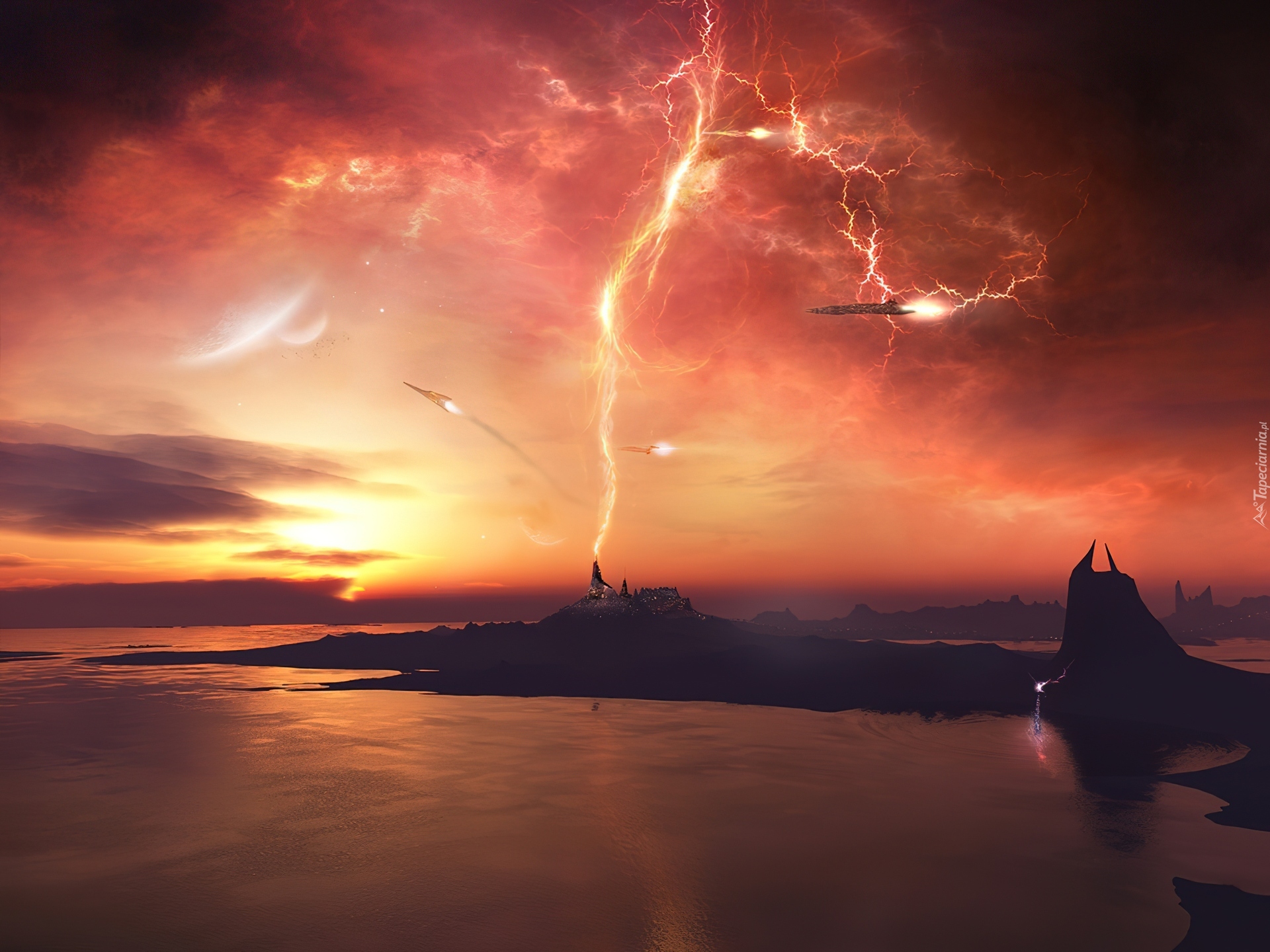 Edytor tapety: Piorun, Fantasy, Rakiety