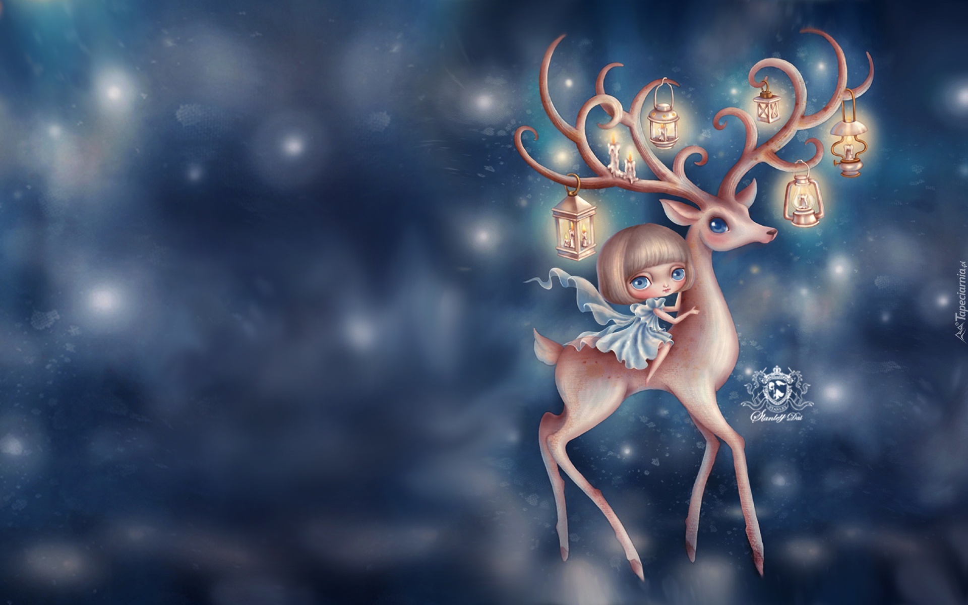 Edytor tapety: Jelonek, Dziewczynka, Lampiony