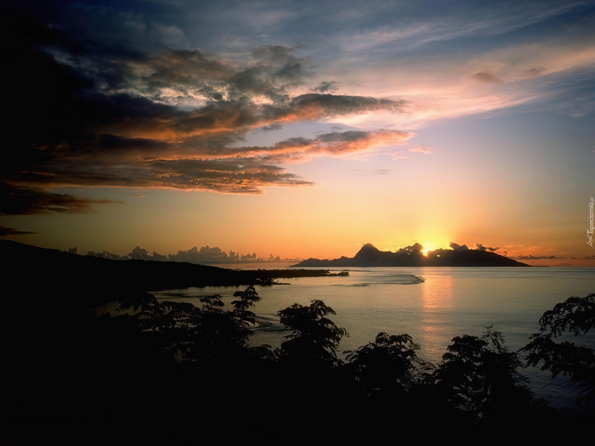 Edytor tapety: Zatoka, Chmury, Zachód, Słońca