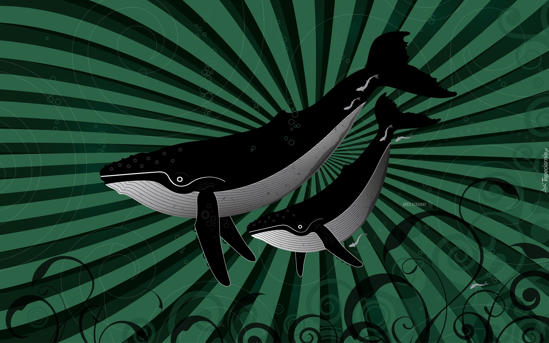 Edytor tapety: Dwa, Wieloryby, Grafika
