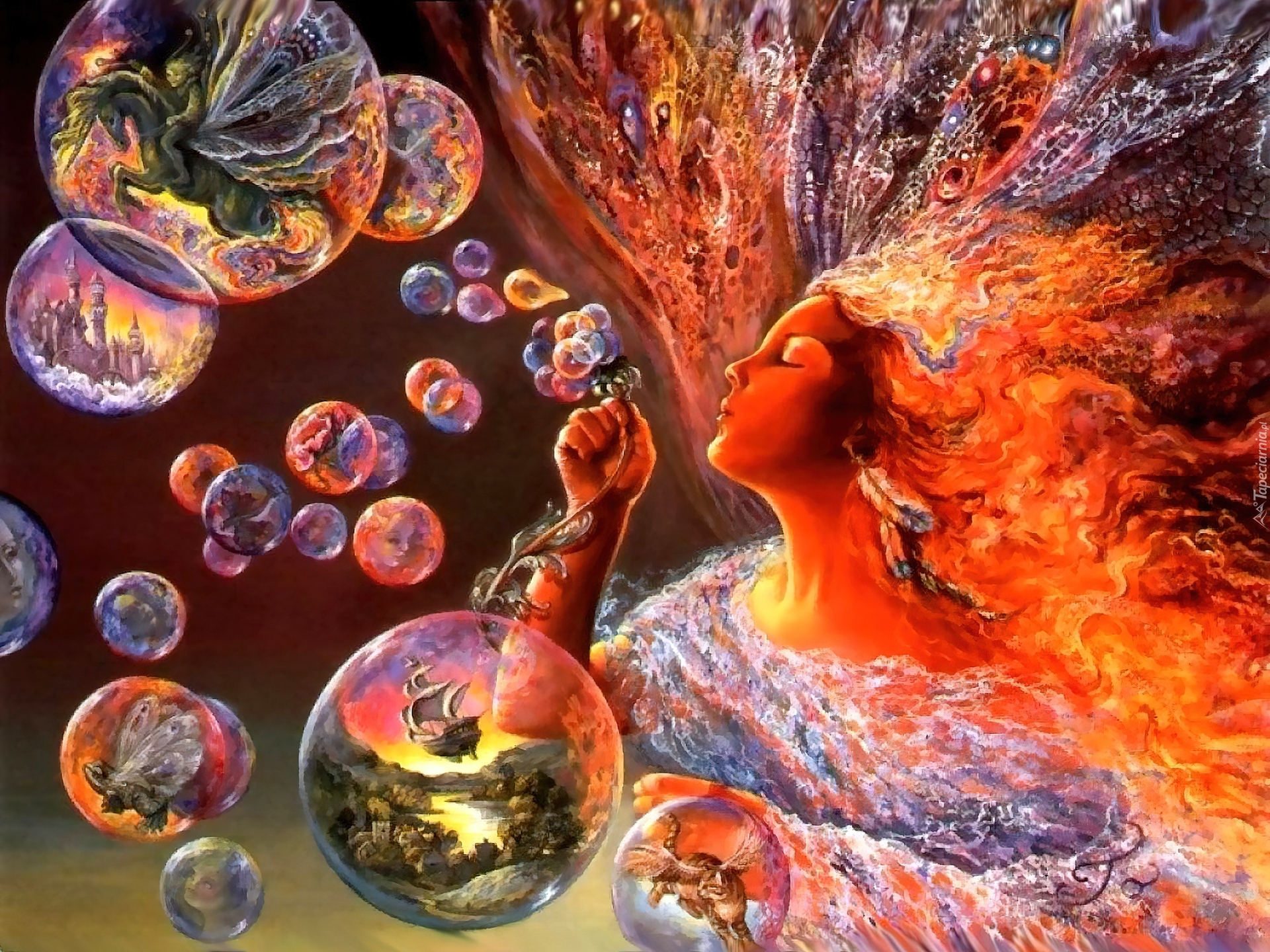 Edytor tapety: Kobieta, Ogniste, Włosy, Bańki, Josephine Wall