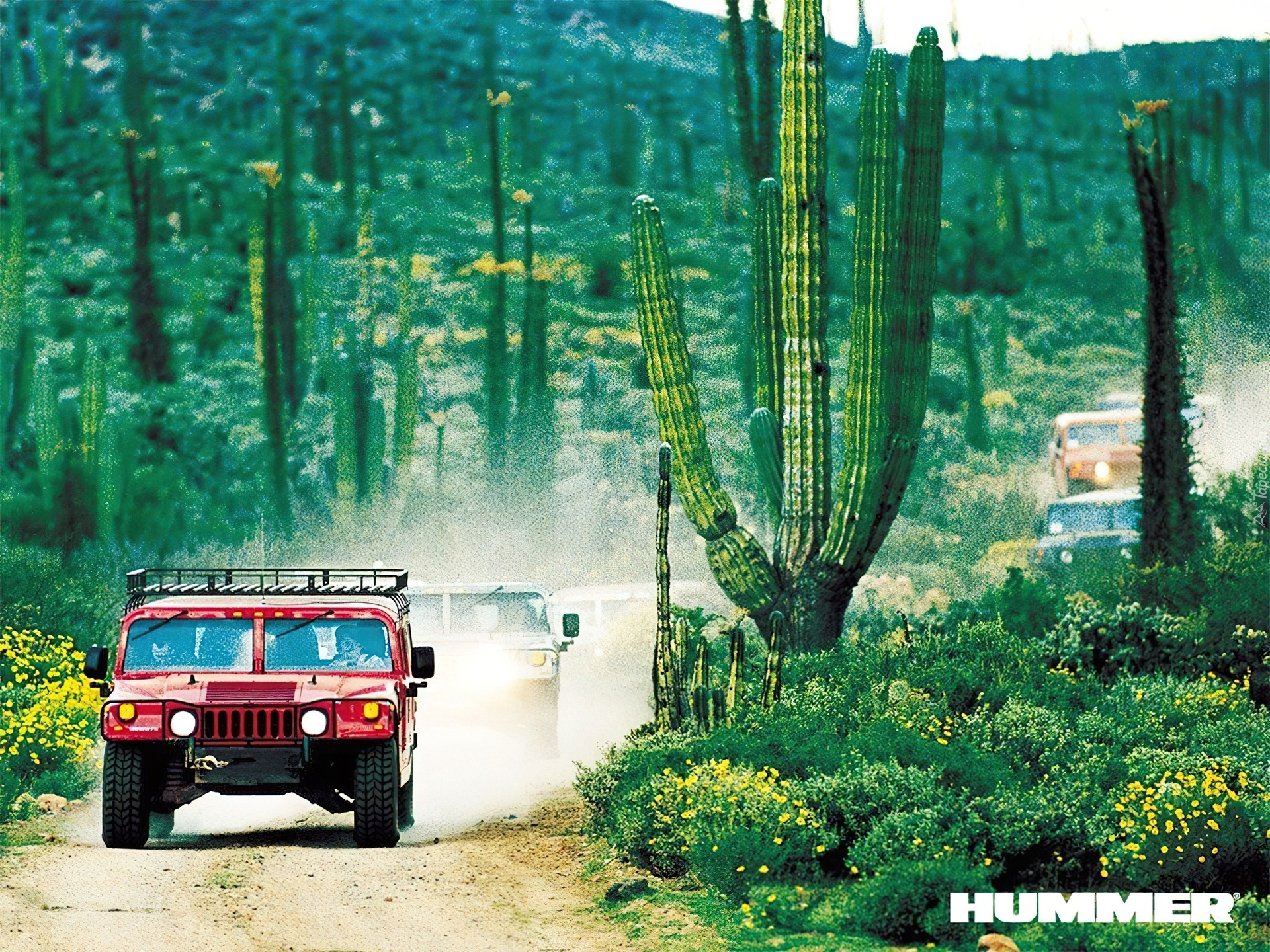 Edytor tapety: Droga, Kaktusy, Hummer H1