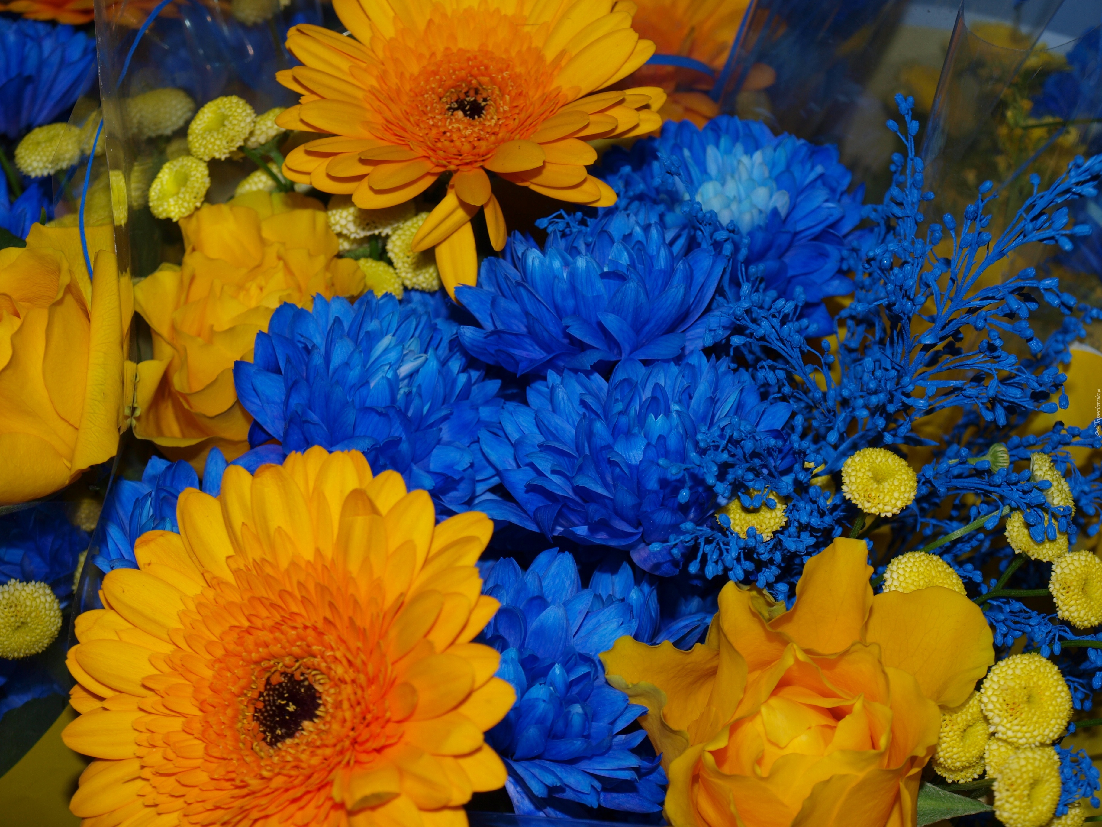 Edytor tapety: Bukiet, Niebiesko, Żółtych, Kwiatów