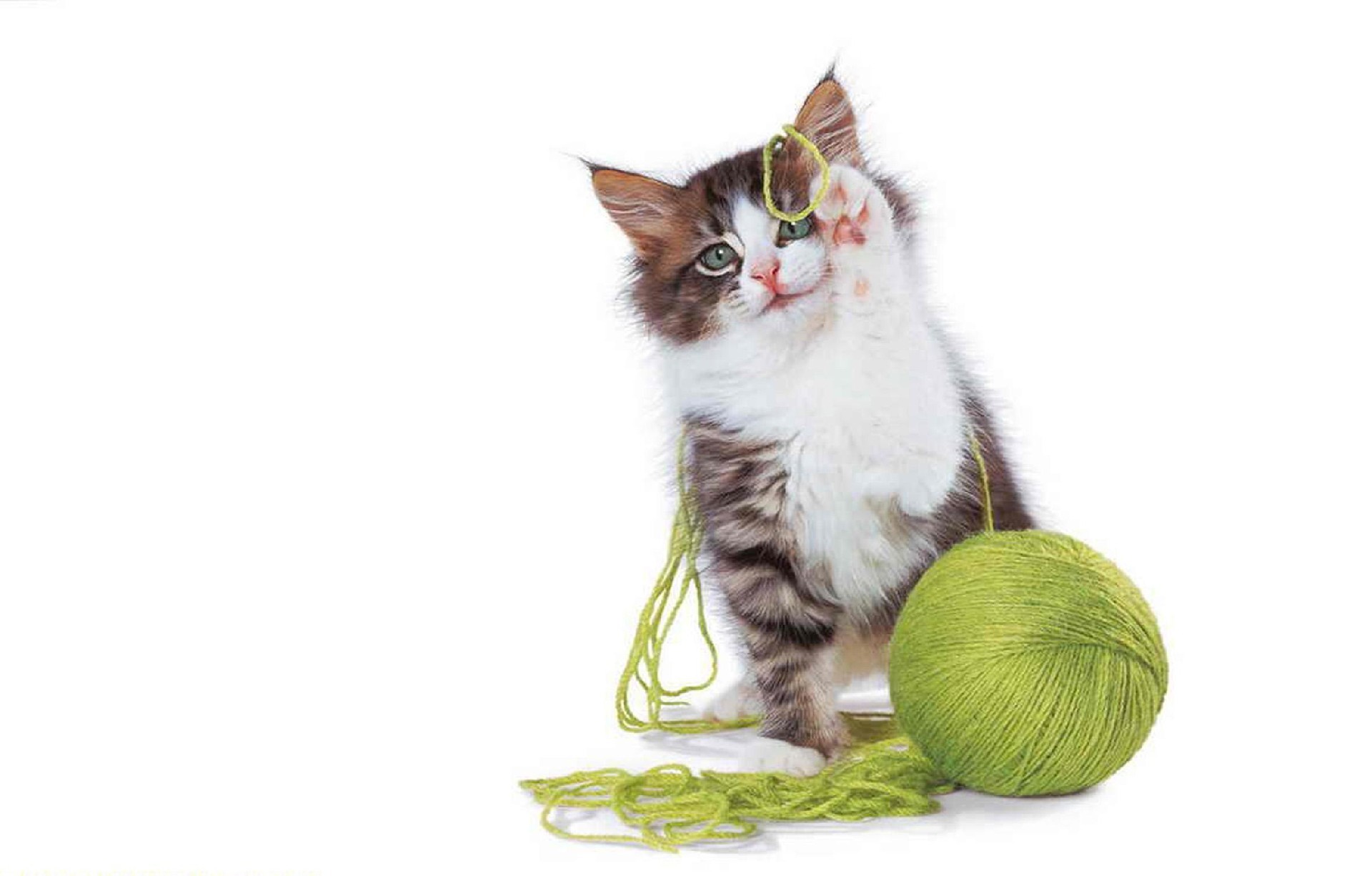 Edytor tapety: Kotek, Zielona, Włóczka, Zabawa