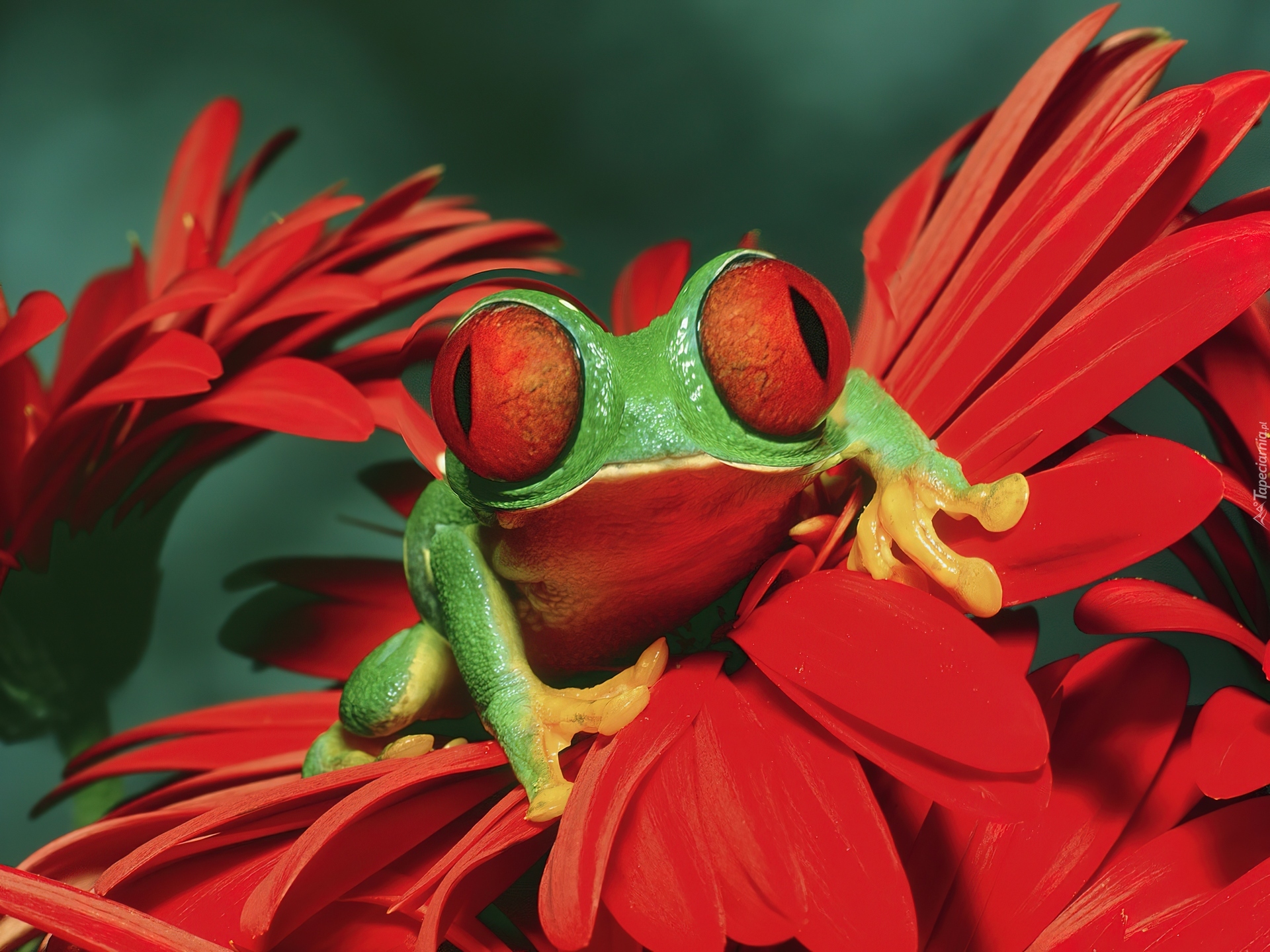 Edytor tapety: Żaba, Czerwone, Oczy, Zez