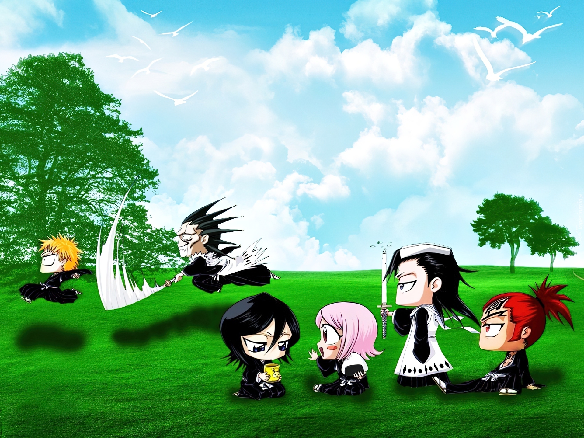Edytor tapety: Postacie, Bleach, Łąka, Chibi