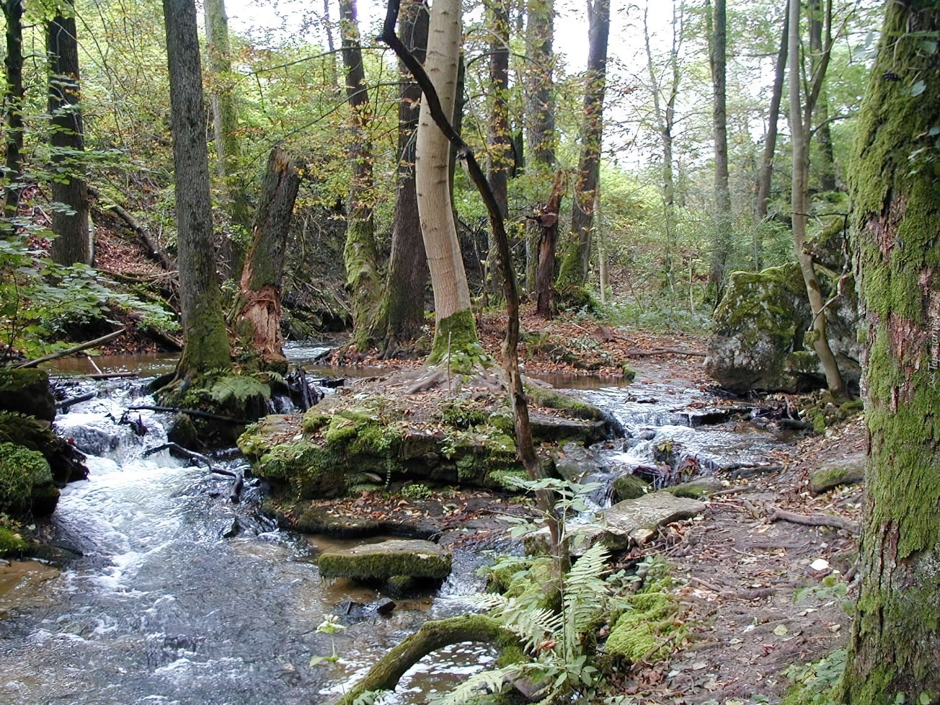 Edytor tapety: Las, Drzewa, Strumyk