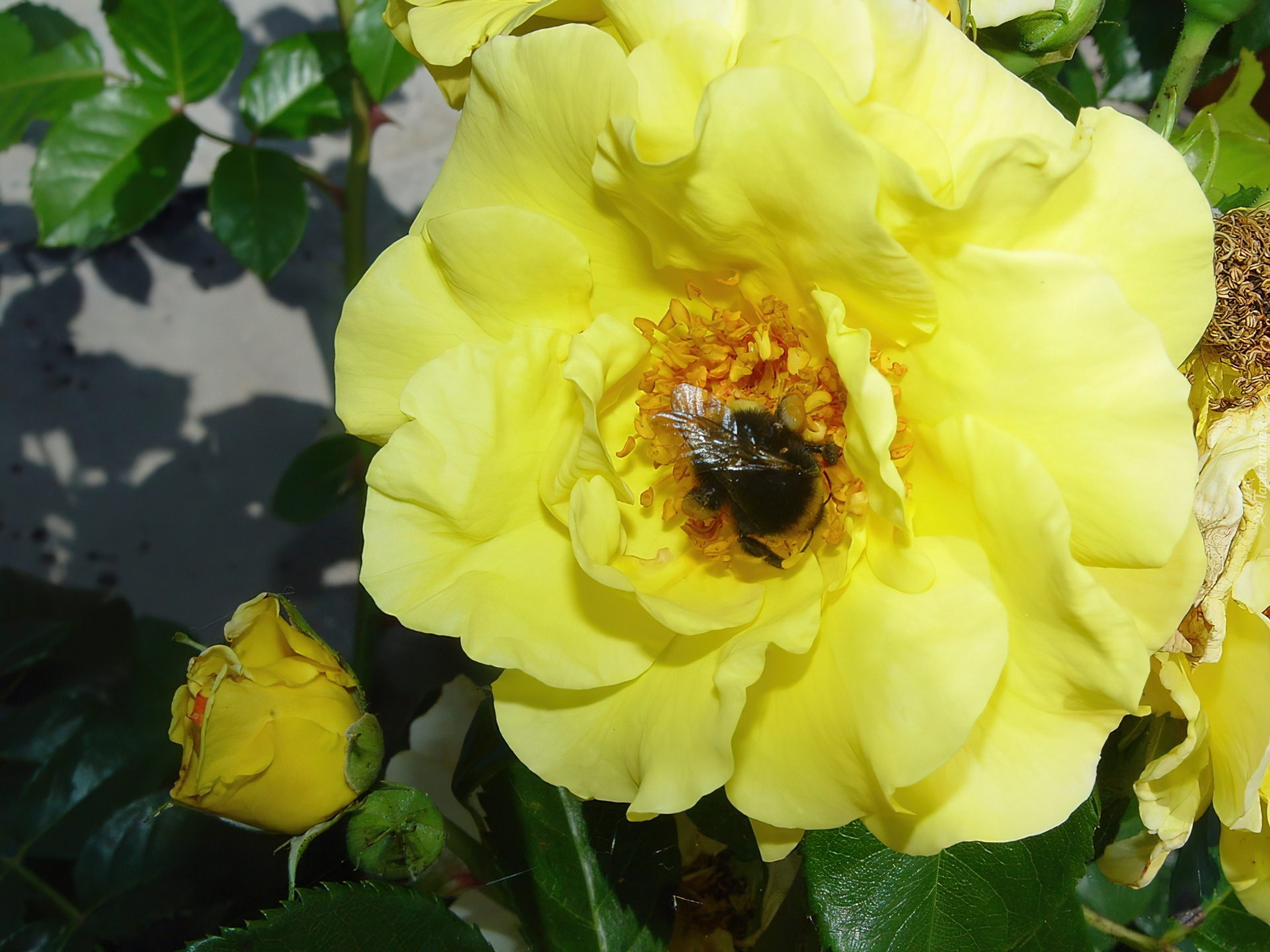 Edytor tapety: Żółta, Róża, Trzmiel