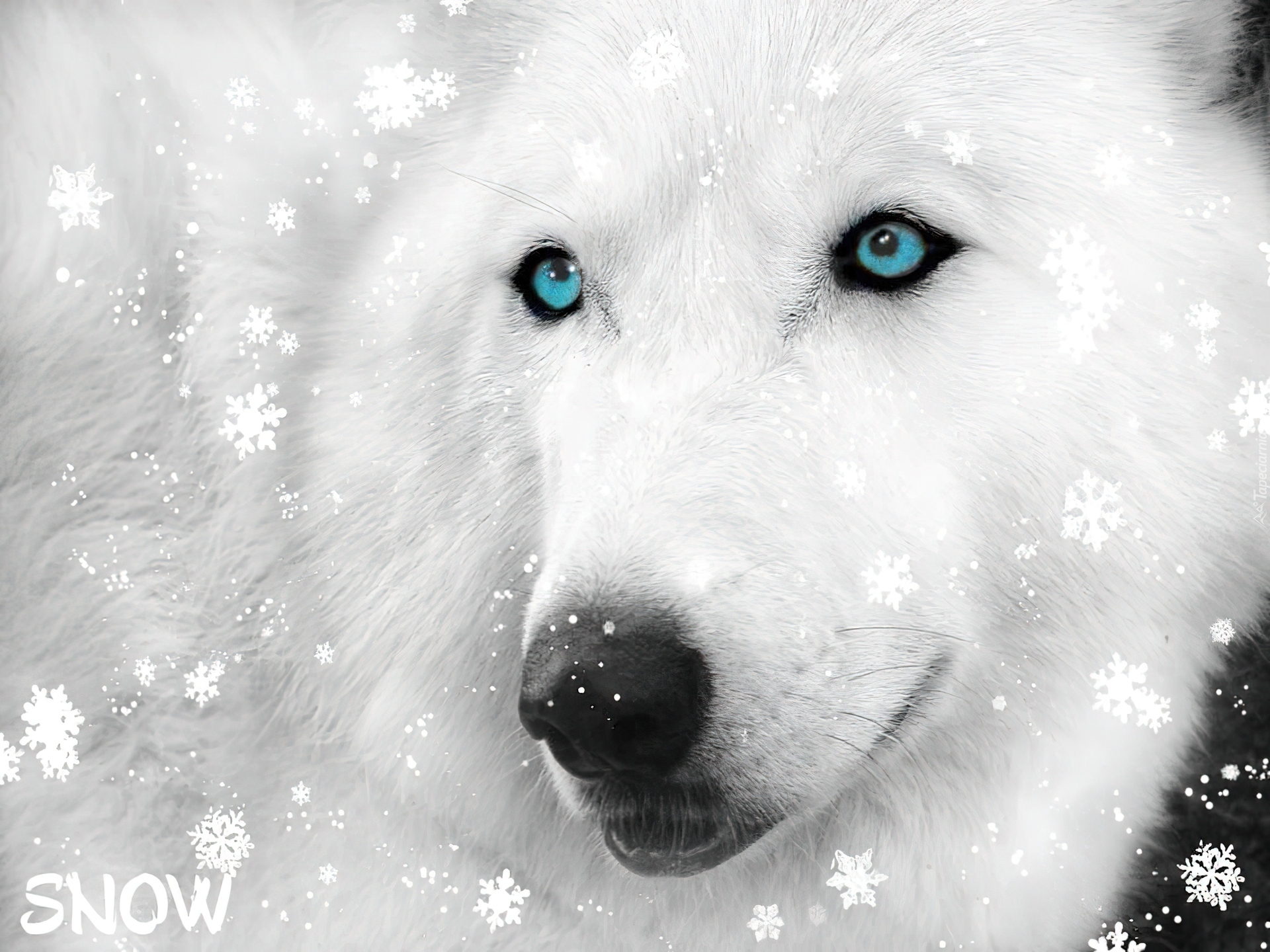 Edytor tapety: Płatki, Śniegu, Siberian Husky
