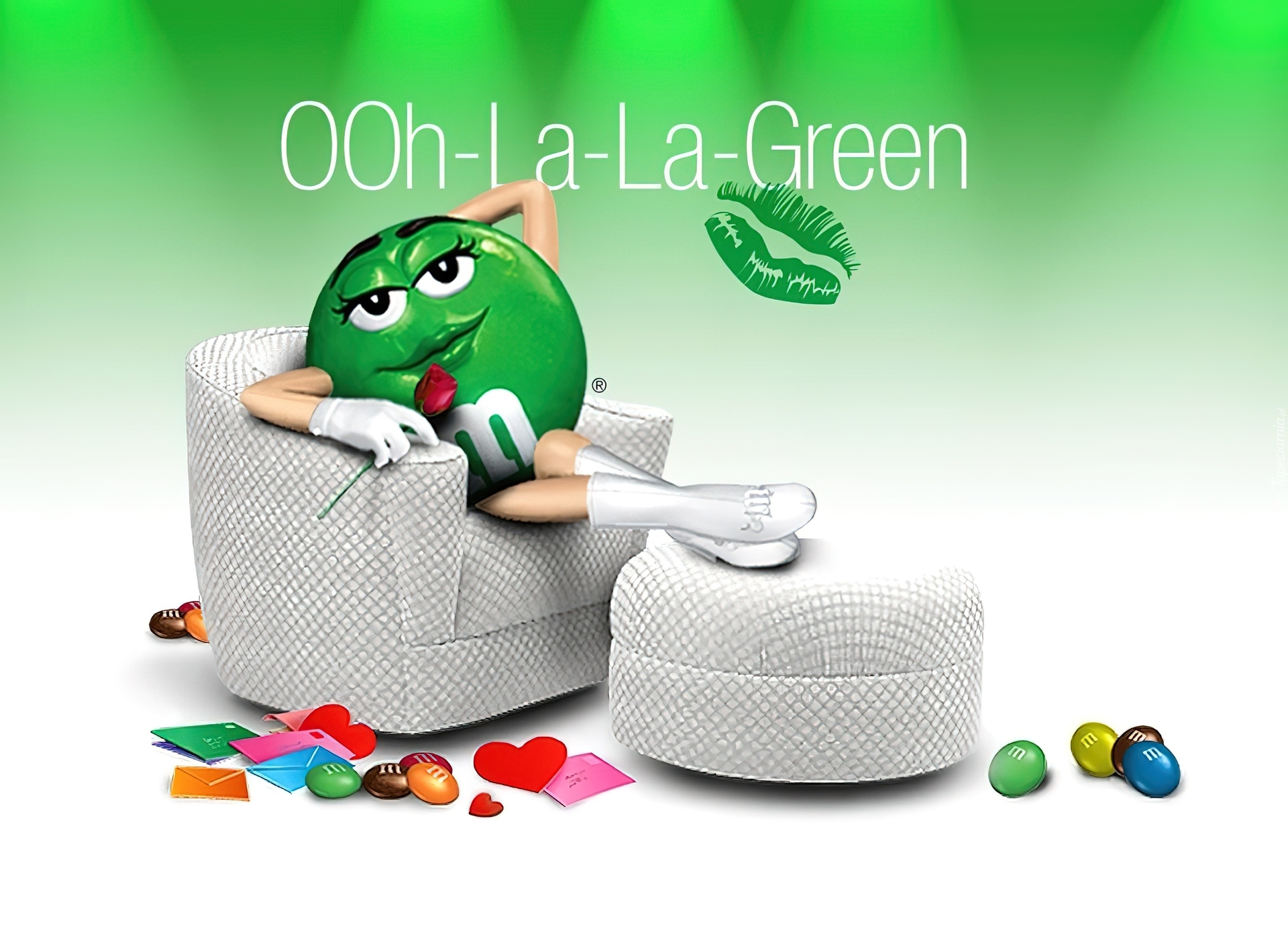 Edytor tapety: M&M, Zielony, Fotel