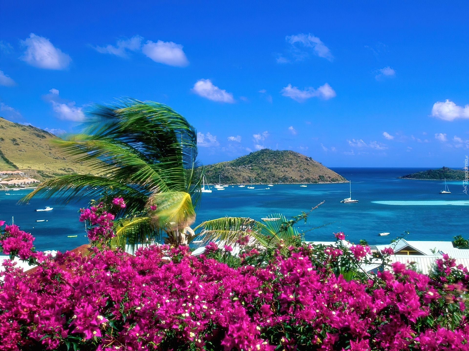 Edytor tapety: Saint Martin, Wyspa, Kwiaty, Morze