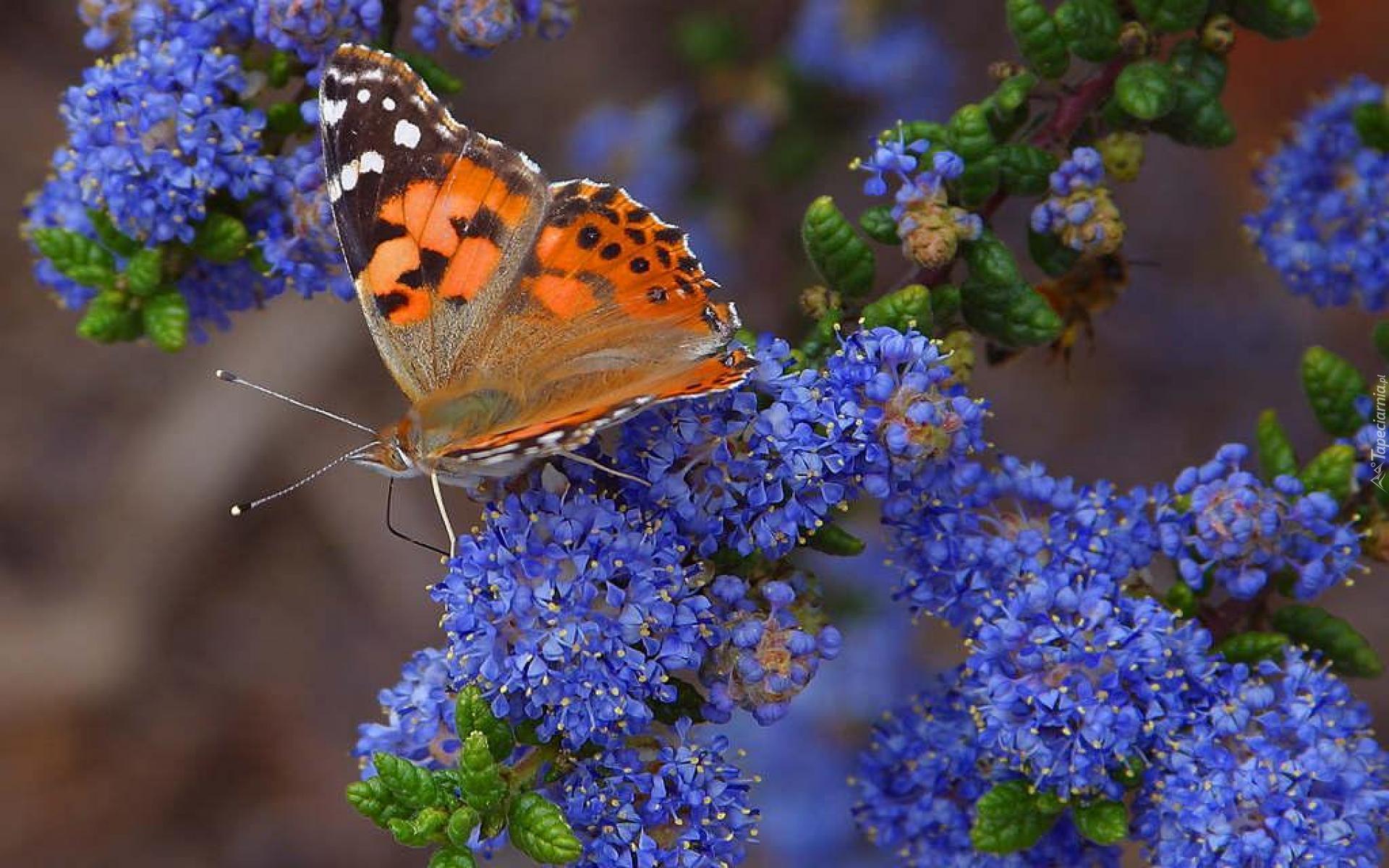 Edytor tapety: Motyl, Rusałka, Osetnik, Niebieskie, Kwiatki