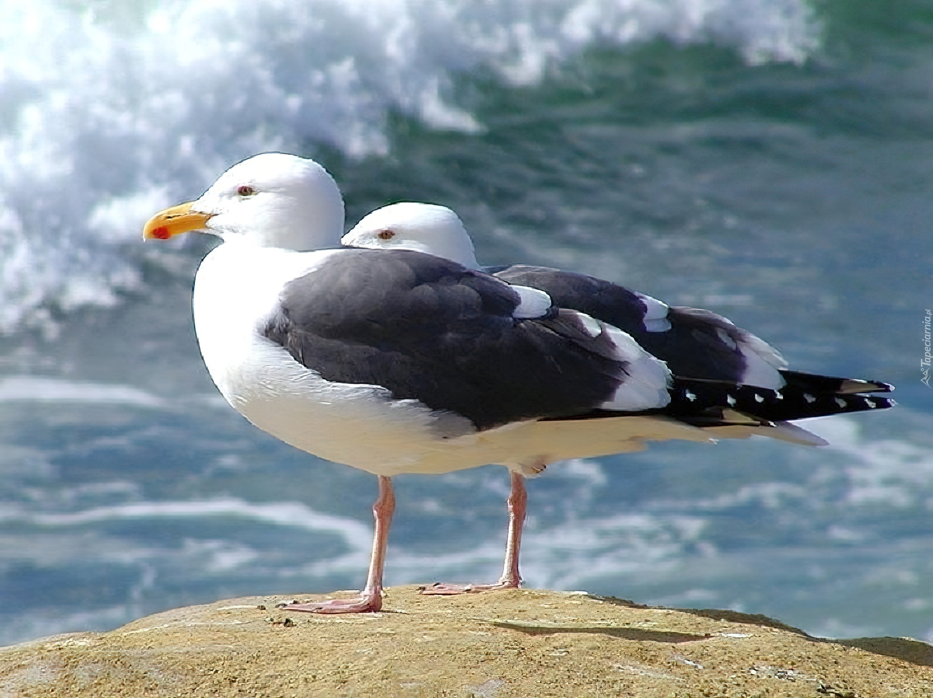 Edytor tapety: Mewy, Morze, Fale