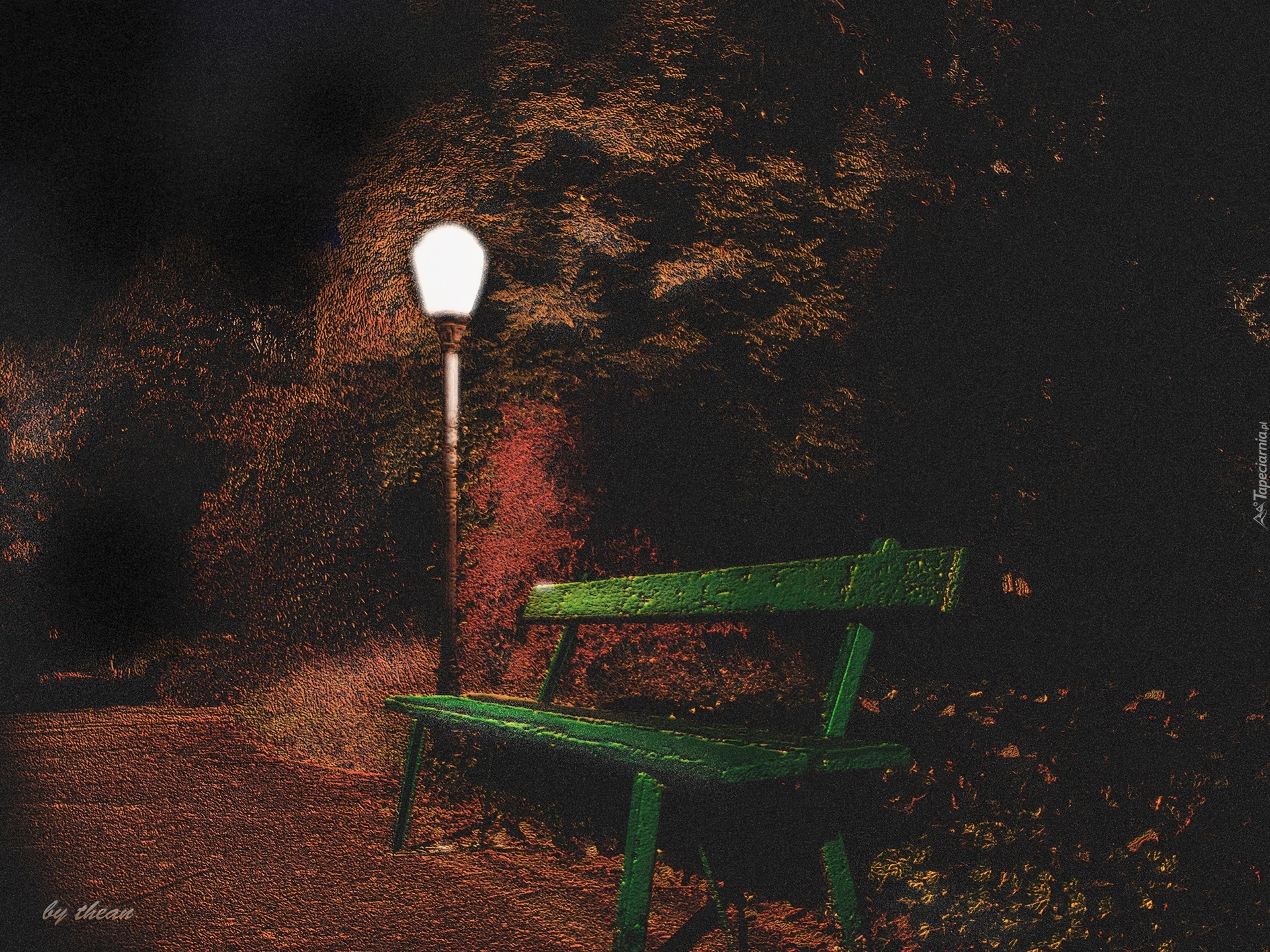 Edytor tapety: Park, Nocą, Latarnia, Zielona, Ławeczka