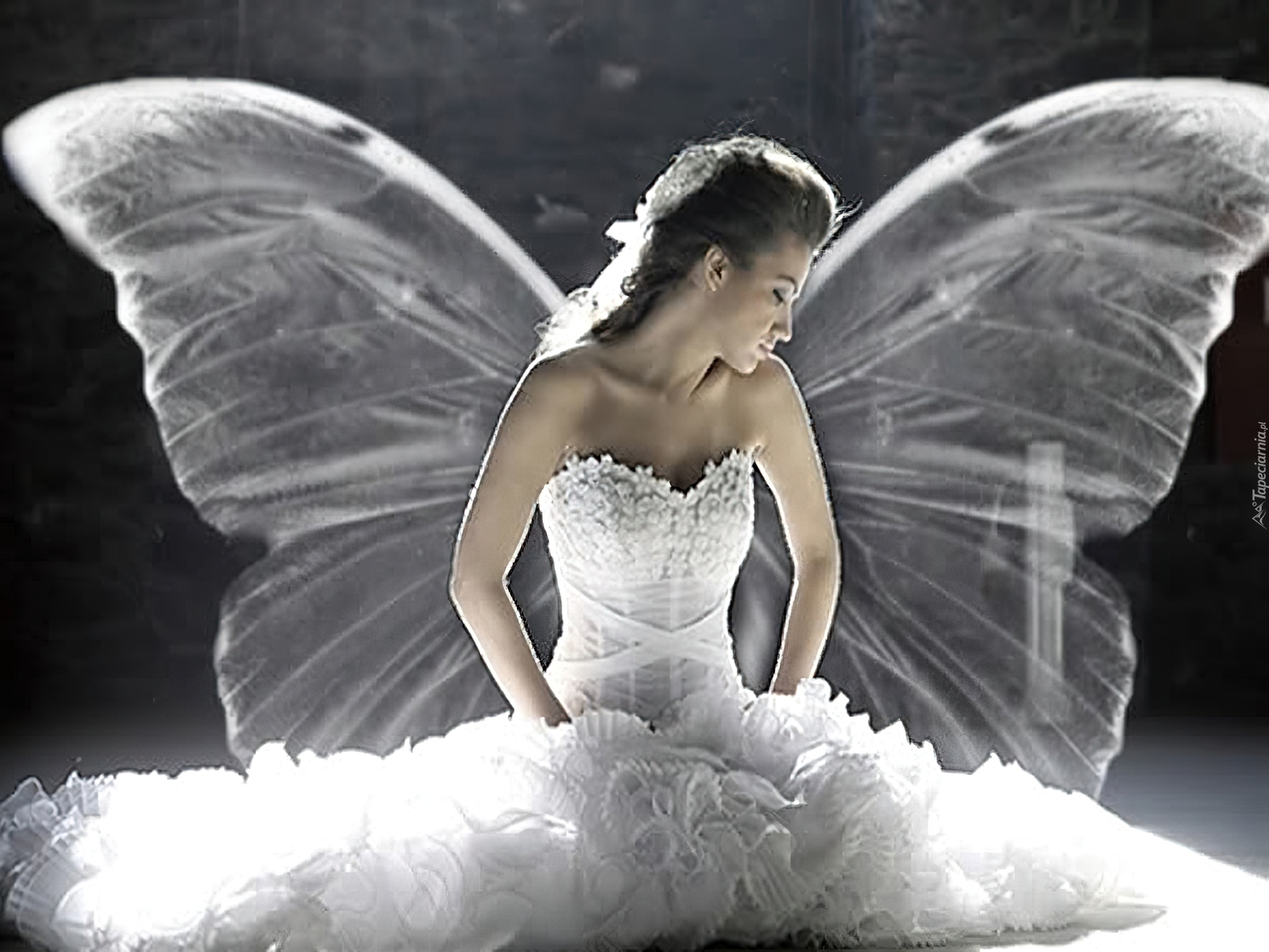 Edytor tapety: Kobieta, Anioł, Biała, Sukienka