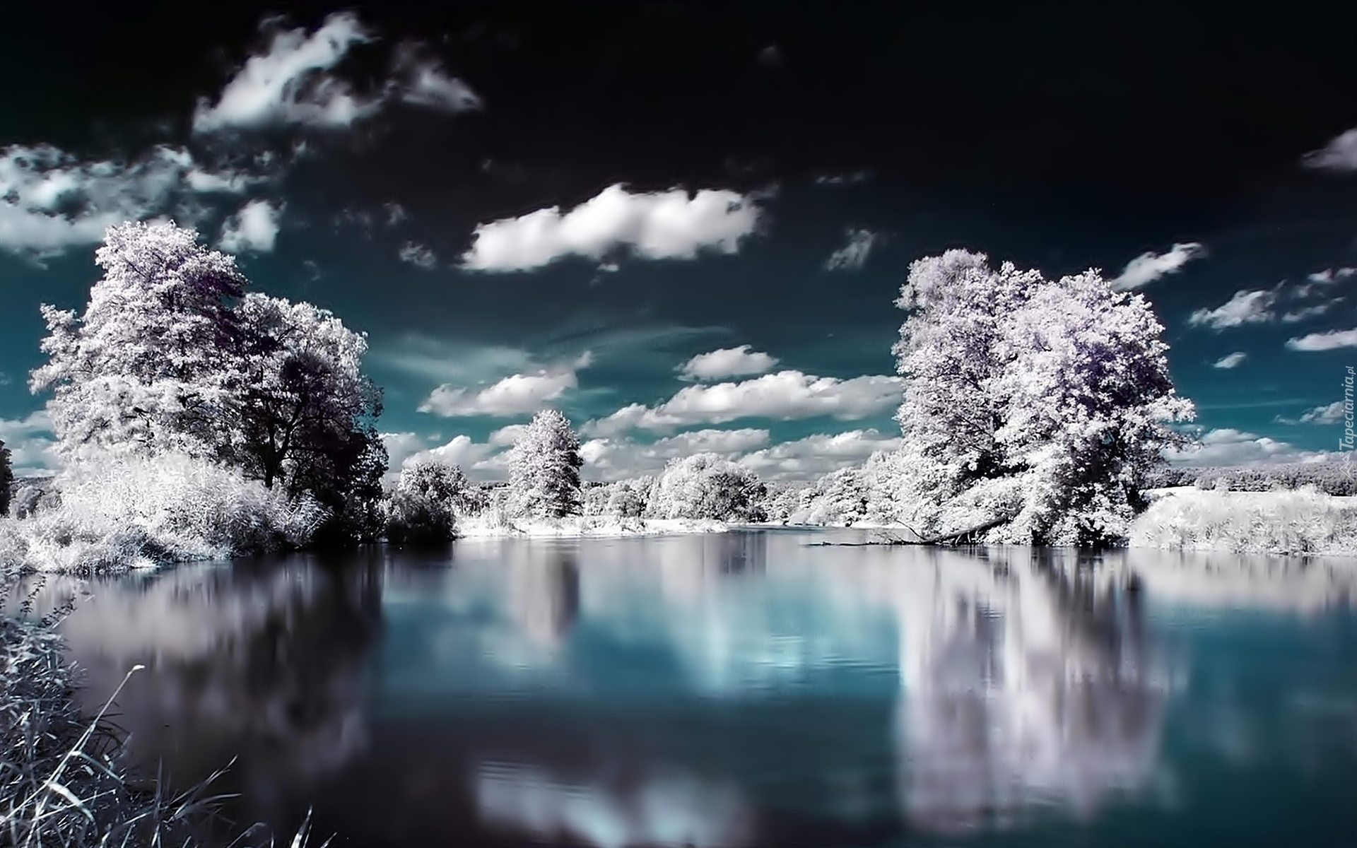 Edytor tapety: Zima, Niebo, Chmury, Jezioro