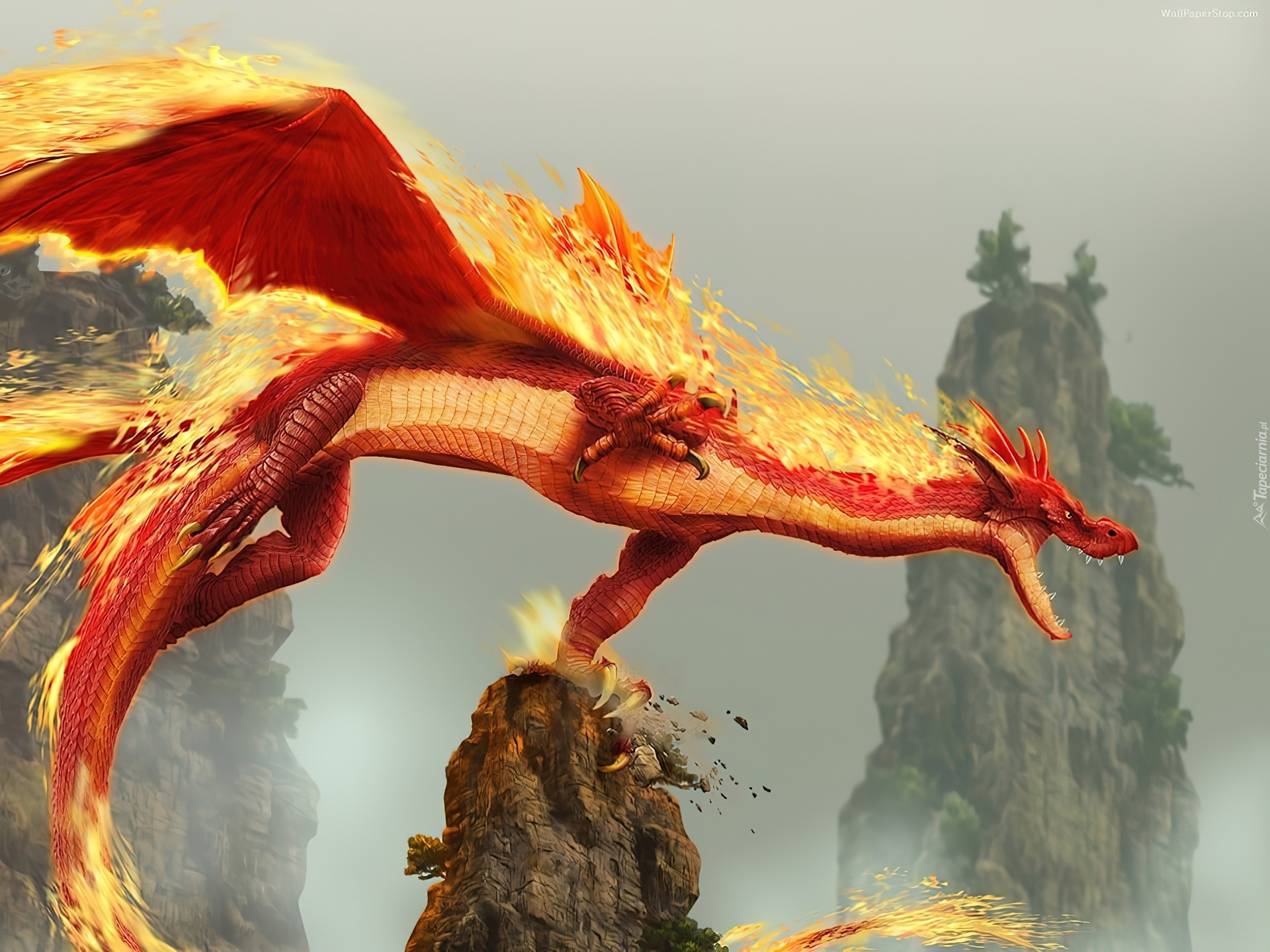 Edytor tapety: Ognisty, Smok, Skała