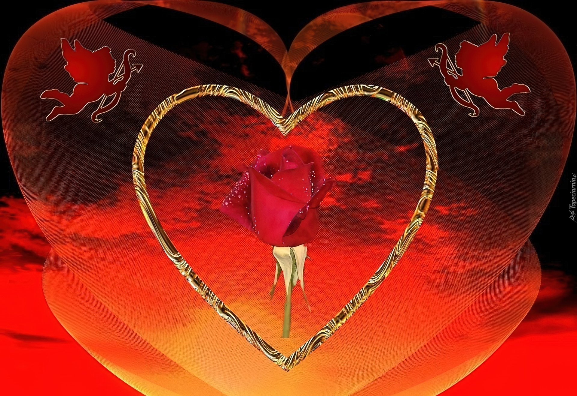 Edytor tapety: Walentynki, Amorki, Czerwona, Róża