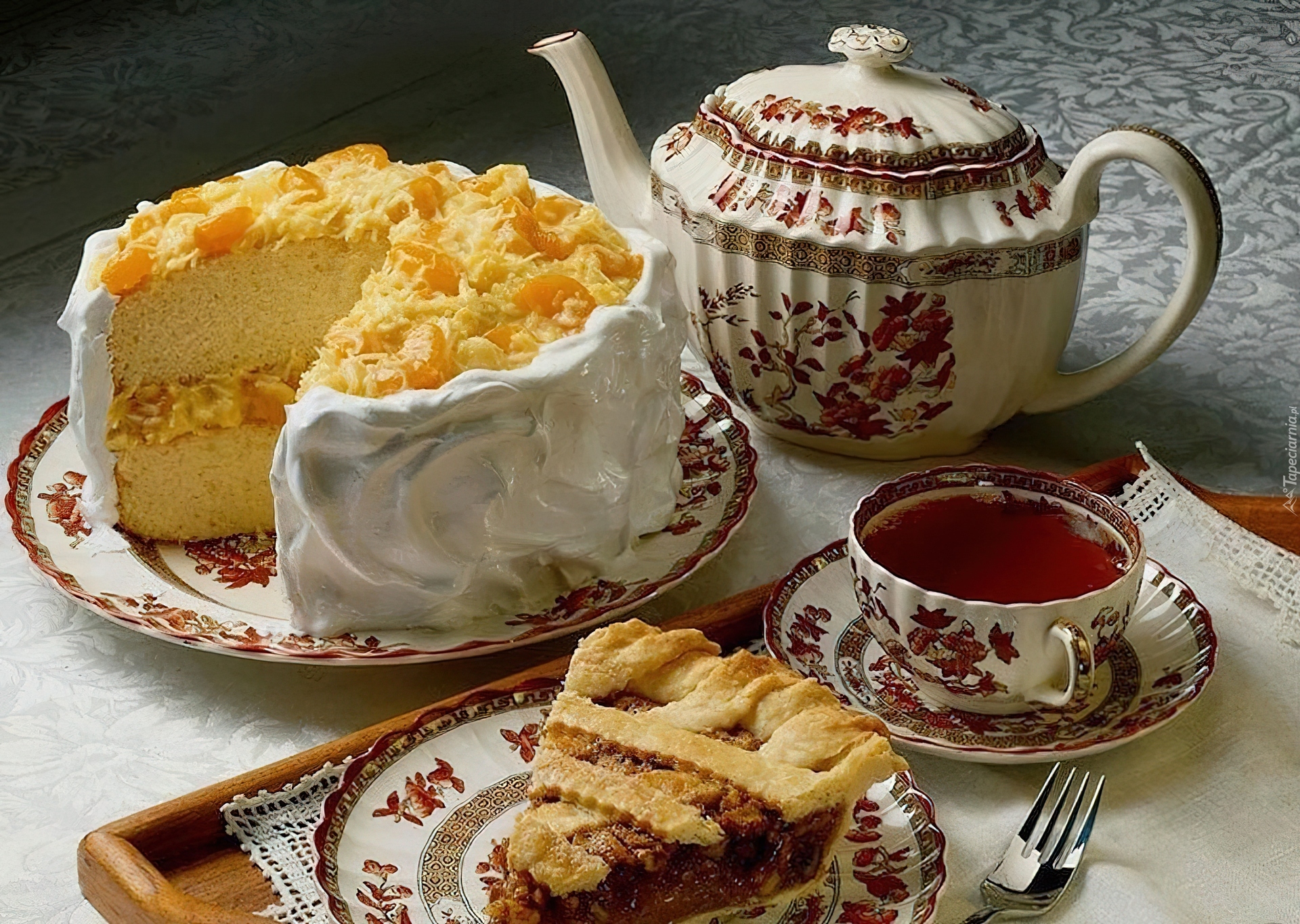Edytor tapety: Kawałek, Tortu, Dzbanek, Filiżanka, Herbata