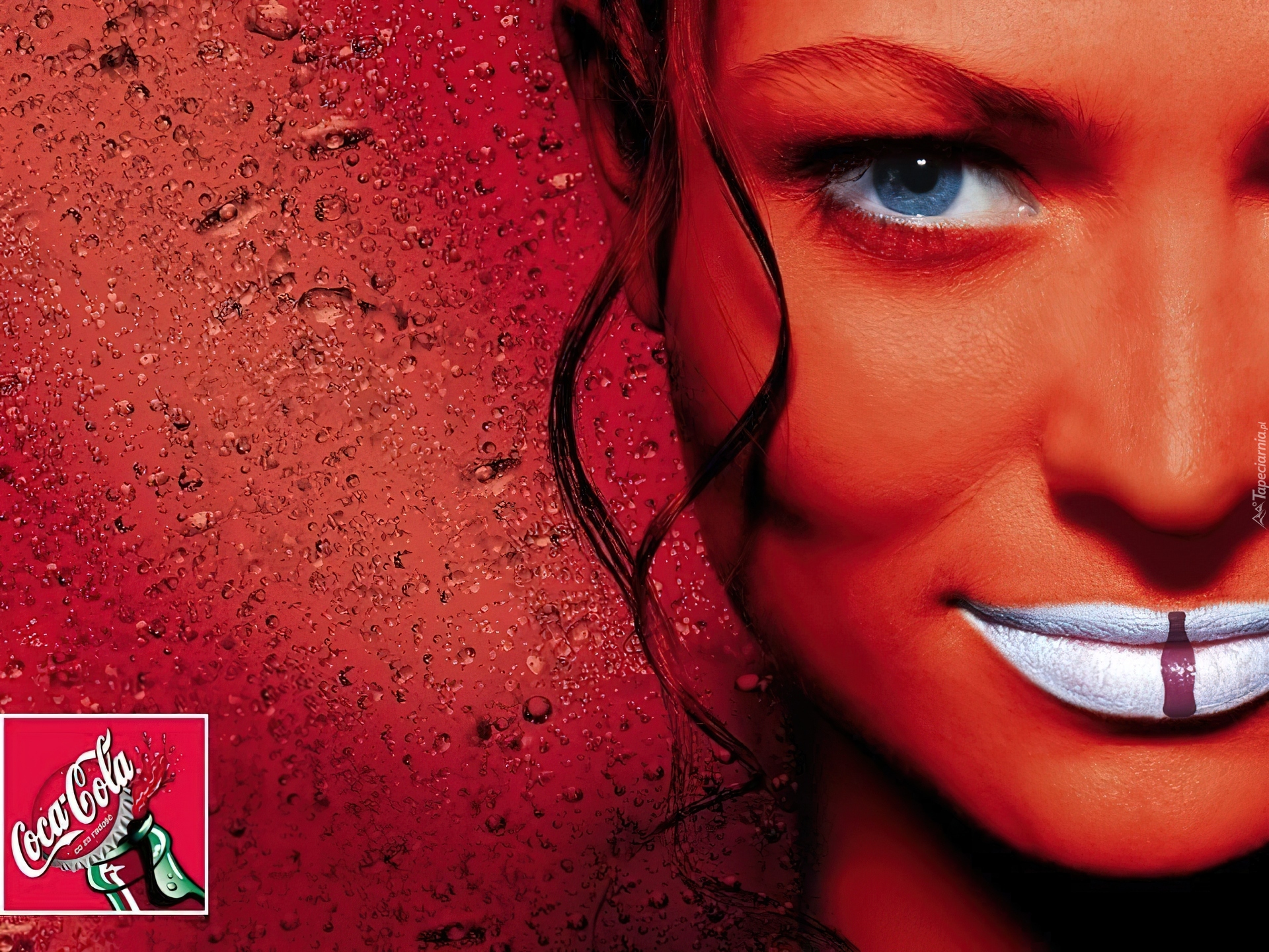 Edytor tapety: Logo, Coca-Cola, Kobieta, Białe, Usta
