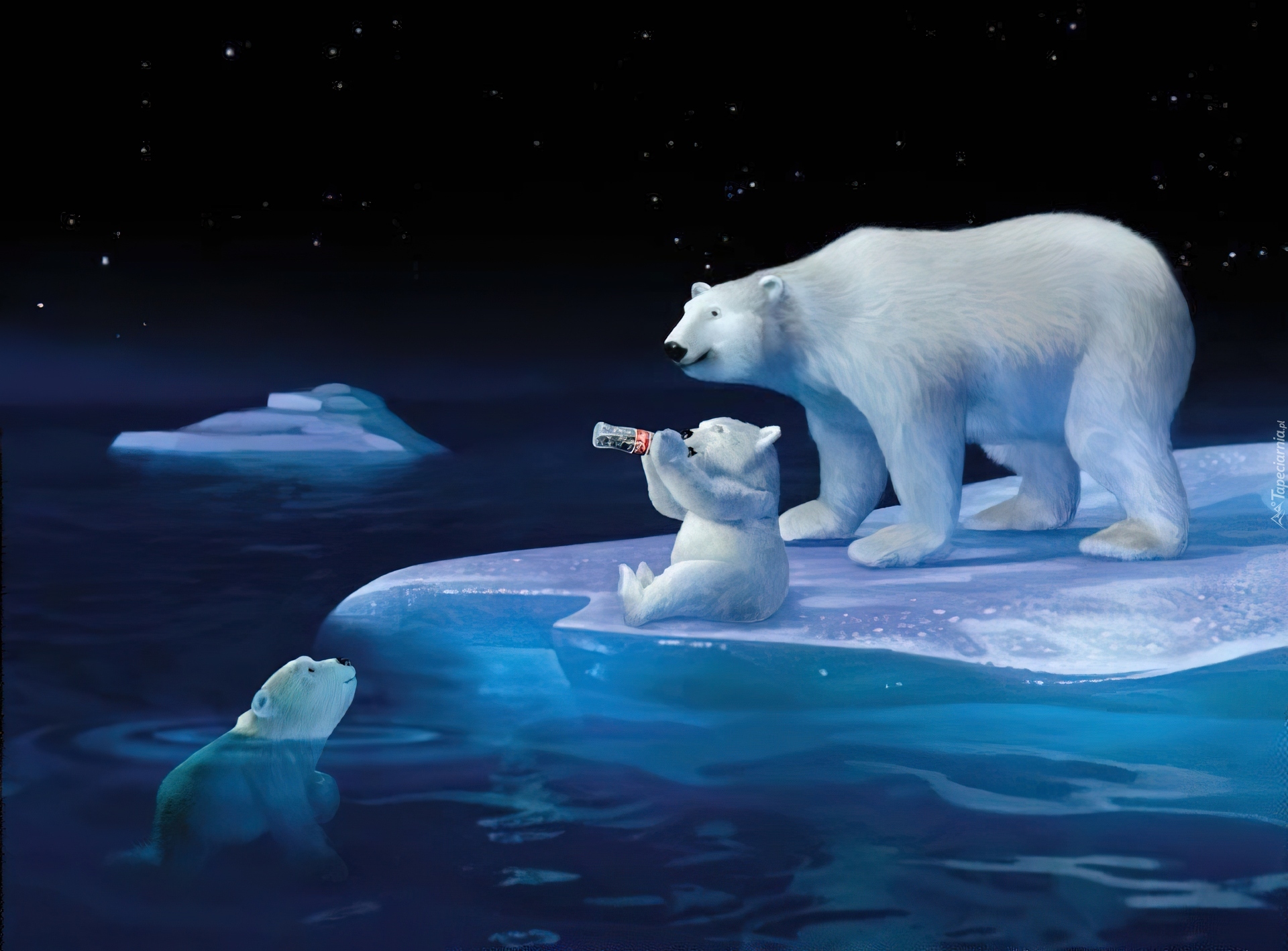 Edytor tapety: Dwa, Niedźwiadki, Kra, Butelka, Coca-Coli