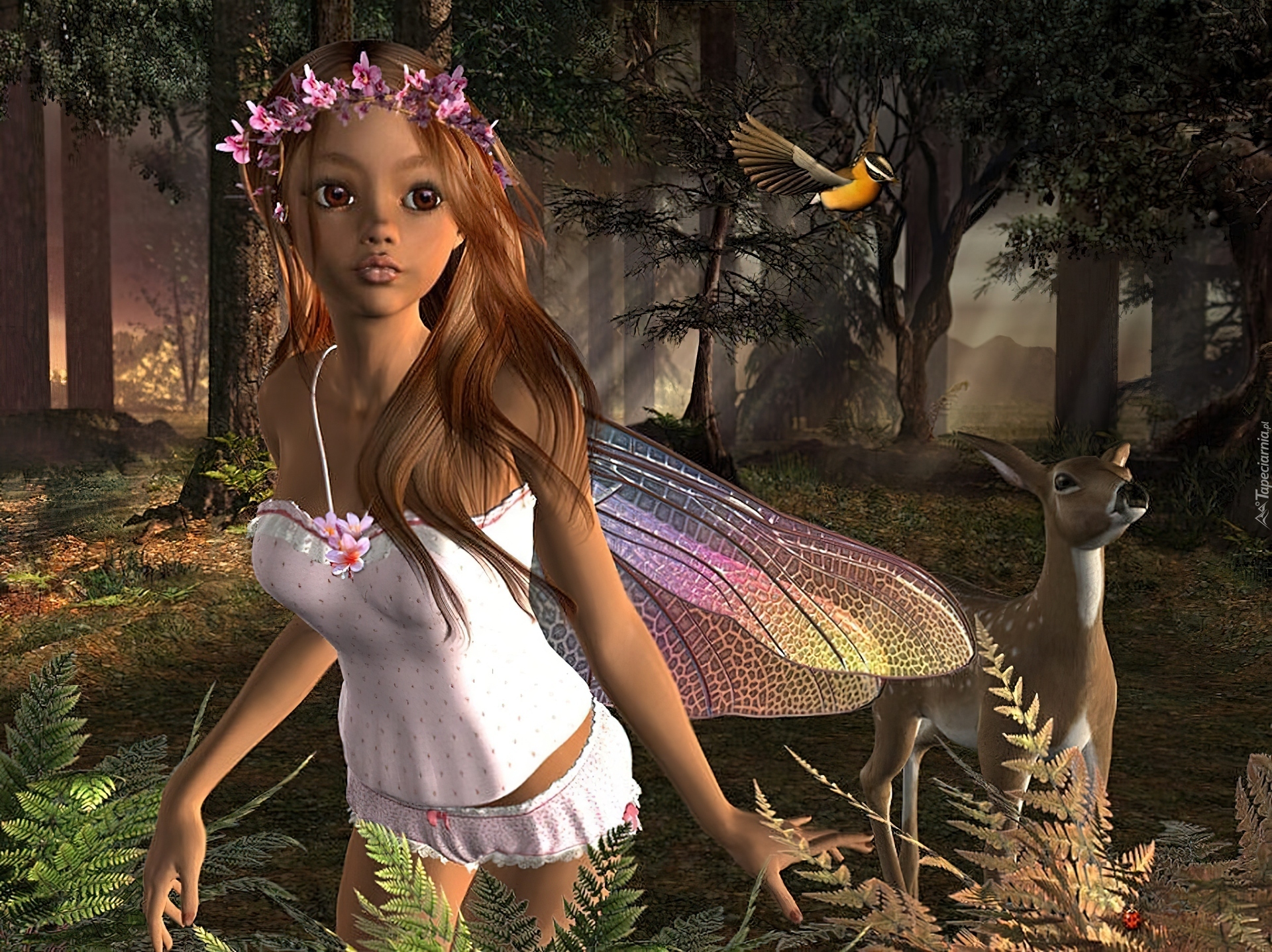 Edytor tapety: Kobieta, Elf, Skrzydła, Las