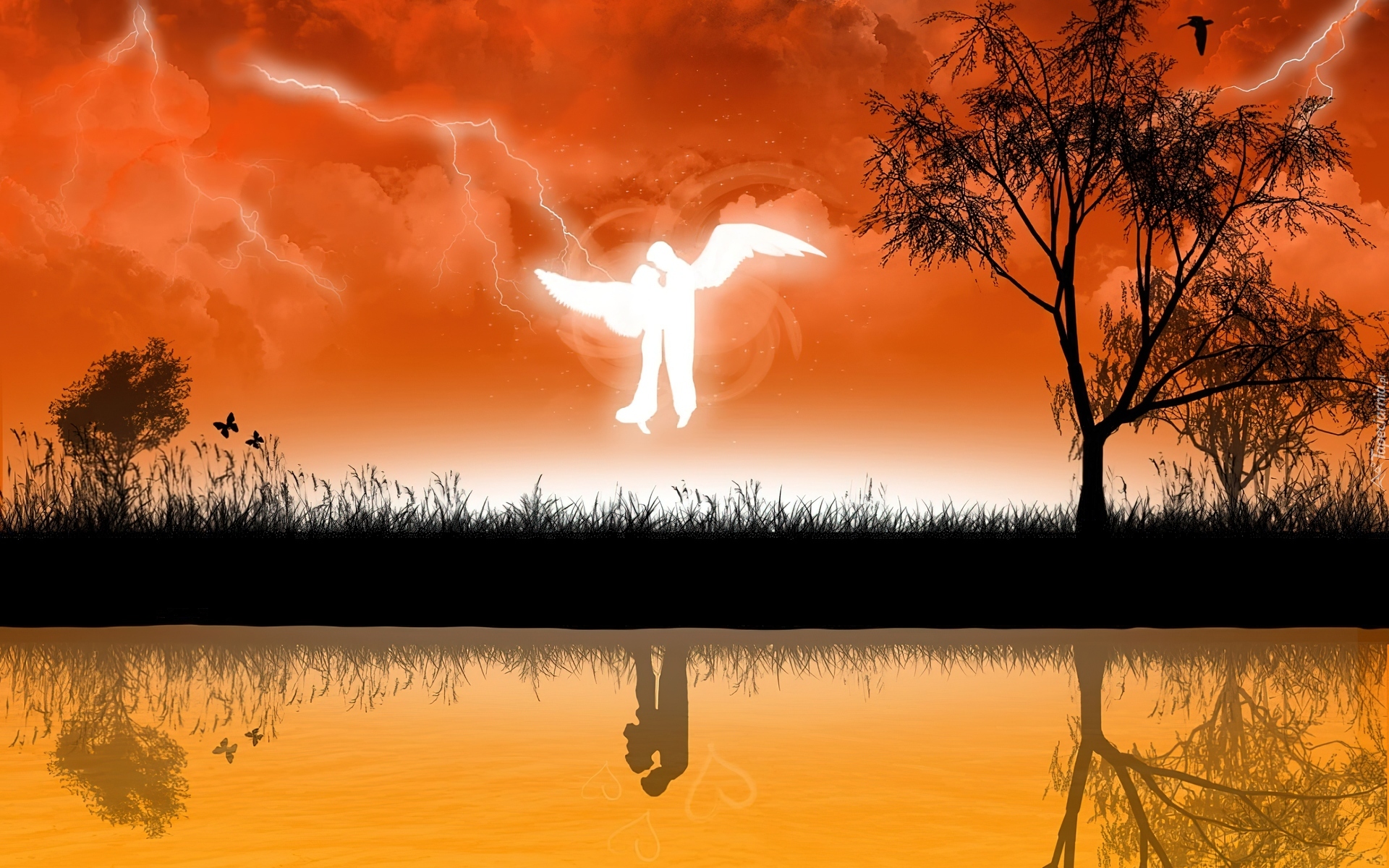 Edytor tapety: Pioruny, Anioły, Fantasy, Para
