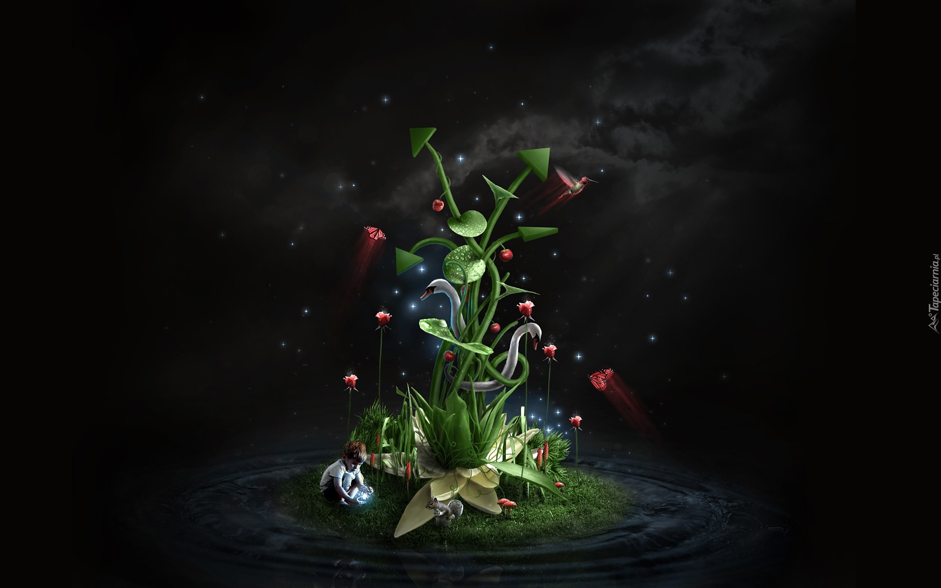 Edytor tapety: Chłopiec, Roślina, Fantasy