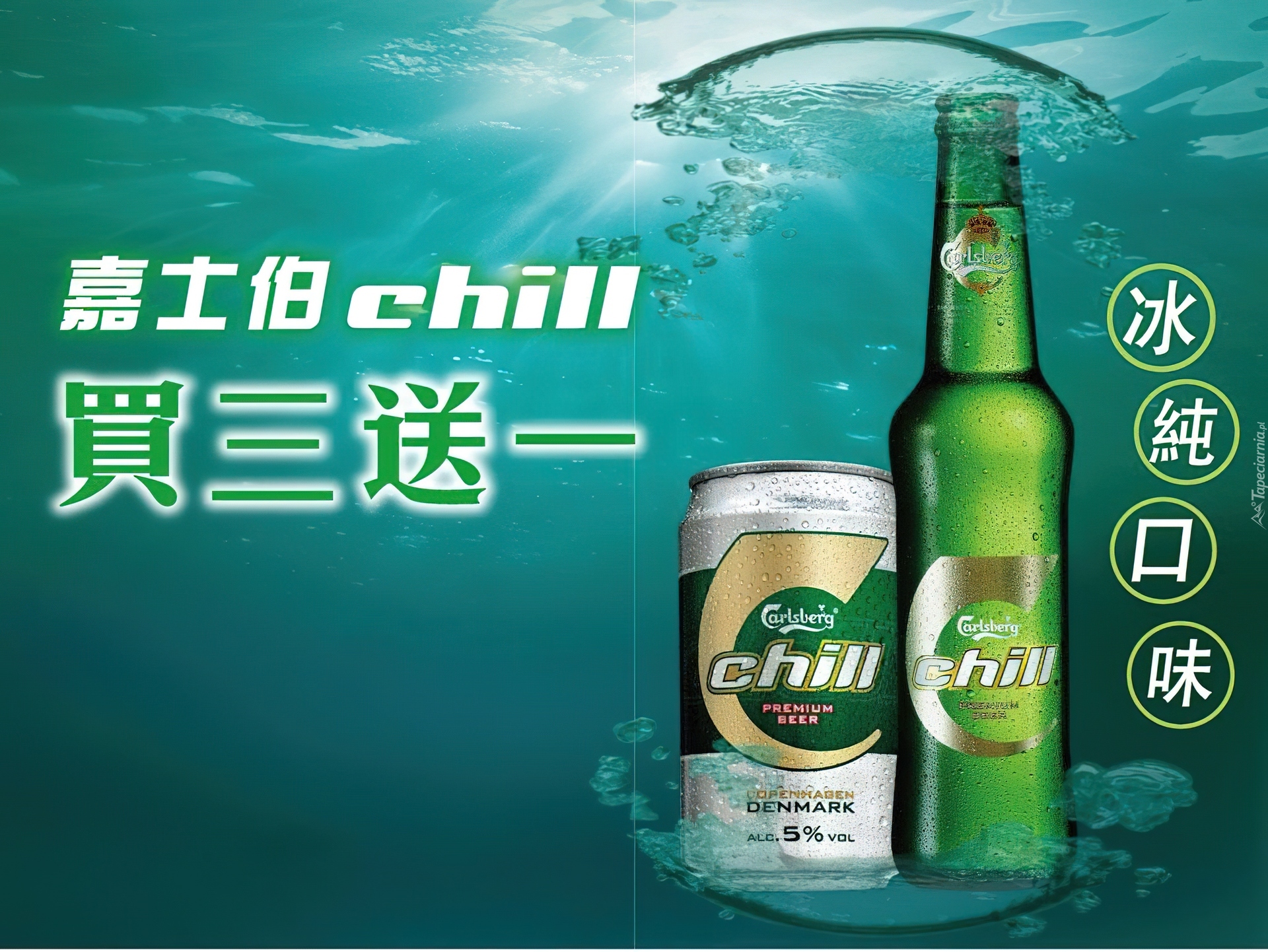 Edytor tapety: Piwo, Calsberg Chill, Butelka, Puszka